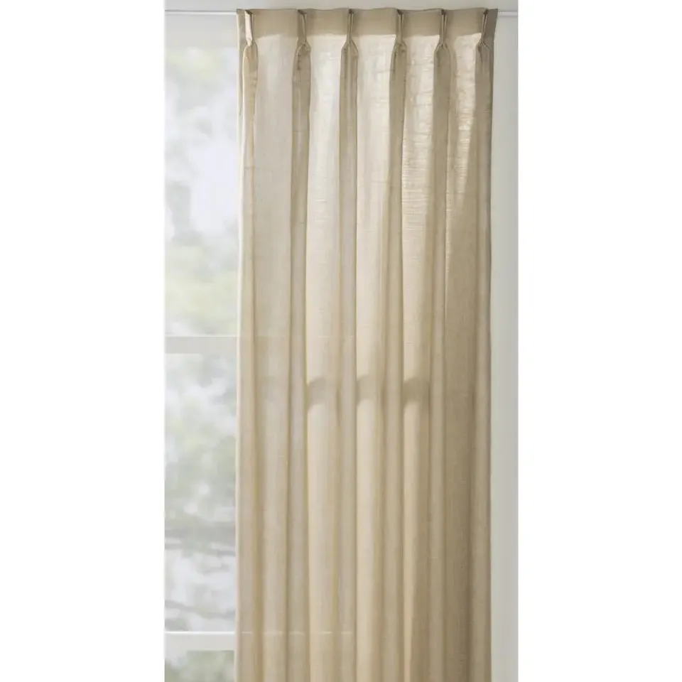 Deze inbetween in zand is semi transparant, waardoor er zacht daglicht binnenkomt terwijl je privacy behoudt. De hoogglans structuur geeft de stof een elegante uitstraling en voegt direct sfeer toe aan de ruimte. Dankzij de loodveter aan de onderzijde valt het gordijn gelijkmatig en strak, wat zorgt voor een verzorgde look bij het raam. De stof kan gewassen worden op 30 graden, behoudt zijn vorm doordat het niet in de droger mag en kan op de lichtste stand gestreken worden voor een nette afwerking. Als je op zoek bent naar zachte lichtinval, een stijlvolle glans en een gordijn dat soepel valt, dan is inbetween Luzia een goede keuze.
