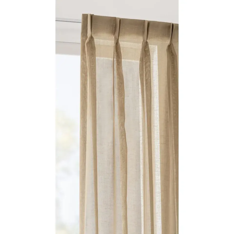 - Een dun geweven gordijnstof met een natuurlijke valling