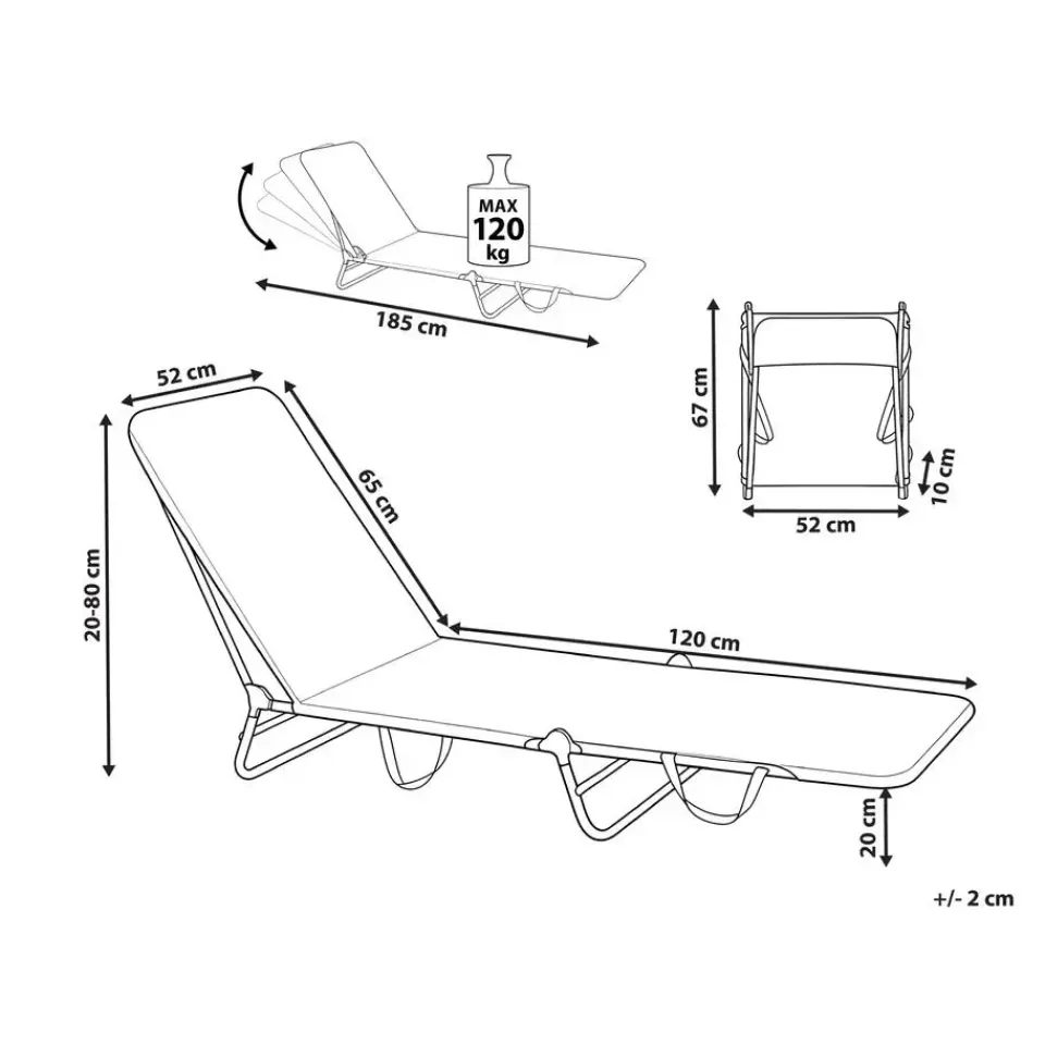 Belangrijkste eigenschappen: Uitstekende plek om te ontspannen, UV-bestendigheidsklasse, Robuuste constructie van het frame, Opgevouwen op te bergen, Verstelbare rugleuning