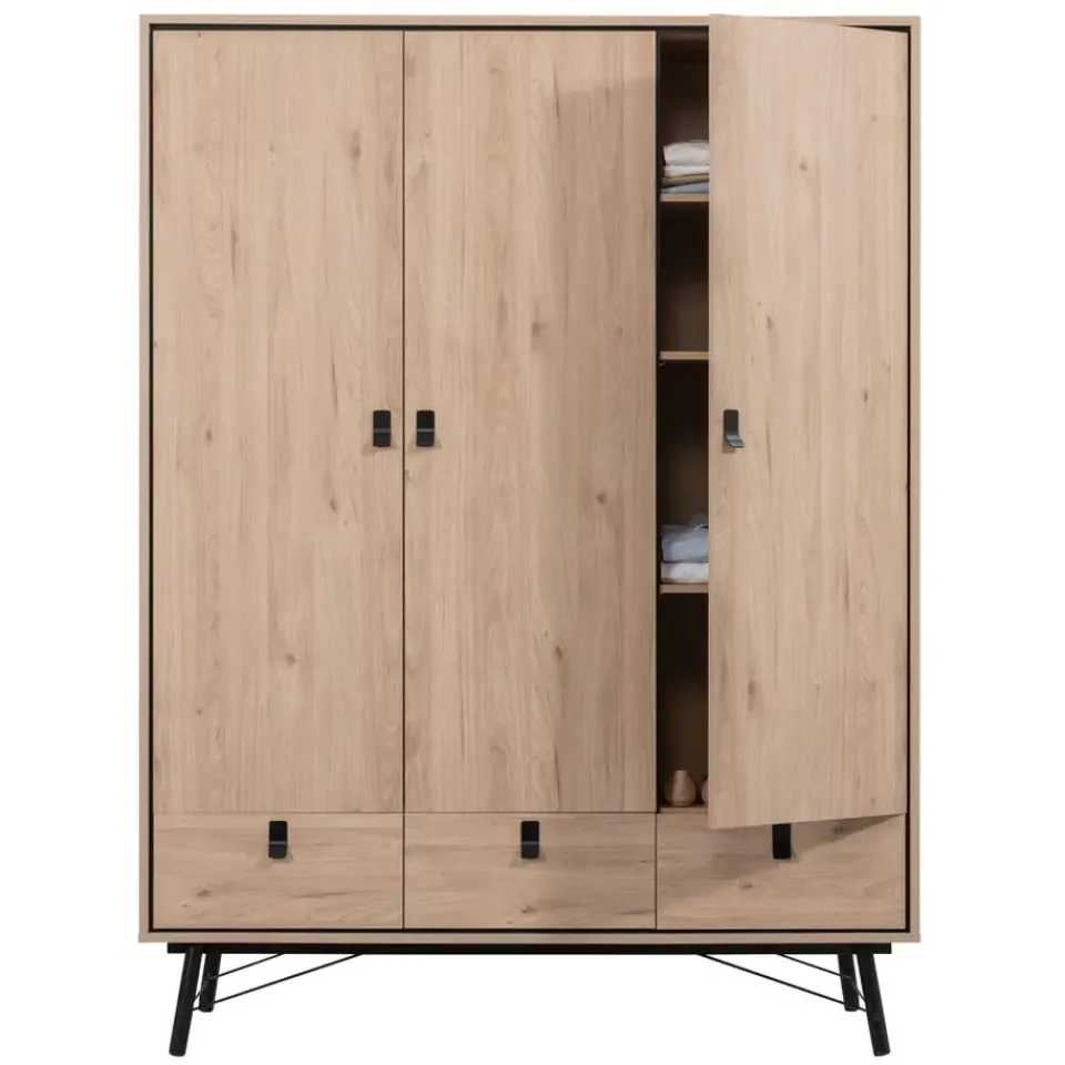 Kleerkast Kansas 3-deurs is een praktische kleerkast met veel opbergruimte. De linnenkast heeft een afmeting van 200x150x60 cm (hxbxd) en heeft 3 openslaande deuren.