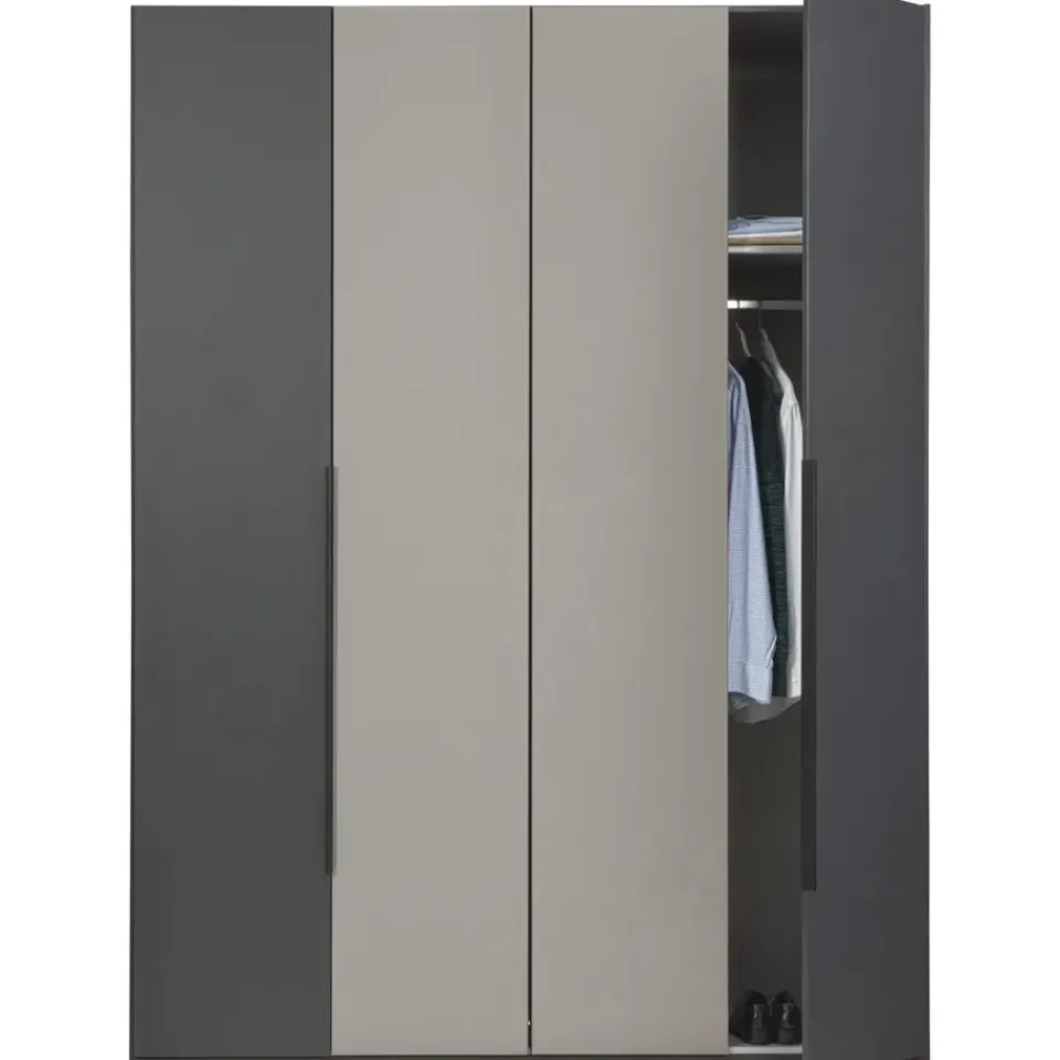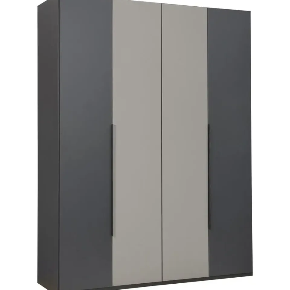 Leen Bakker Kledingkast Milaan 4-deurs – grafiet/greige -236x180x58 cm Hot