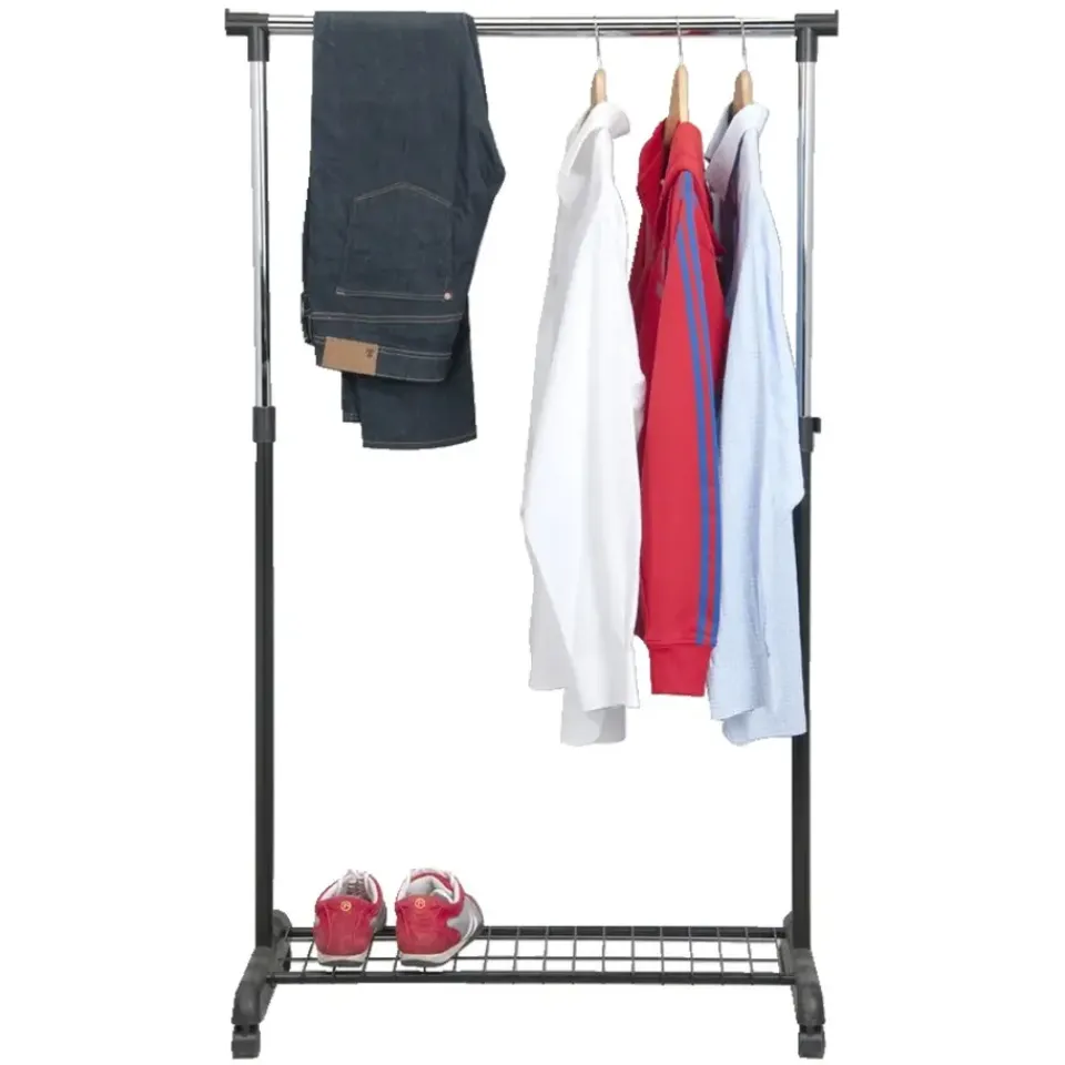 Leen Bakker Kledingrek op wieltjes – zwart/chroom – enkel rek Outlet