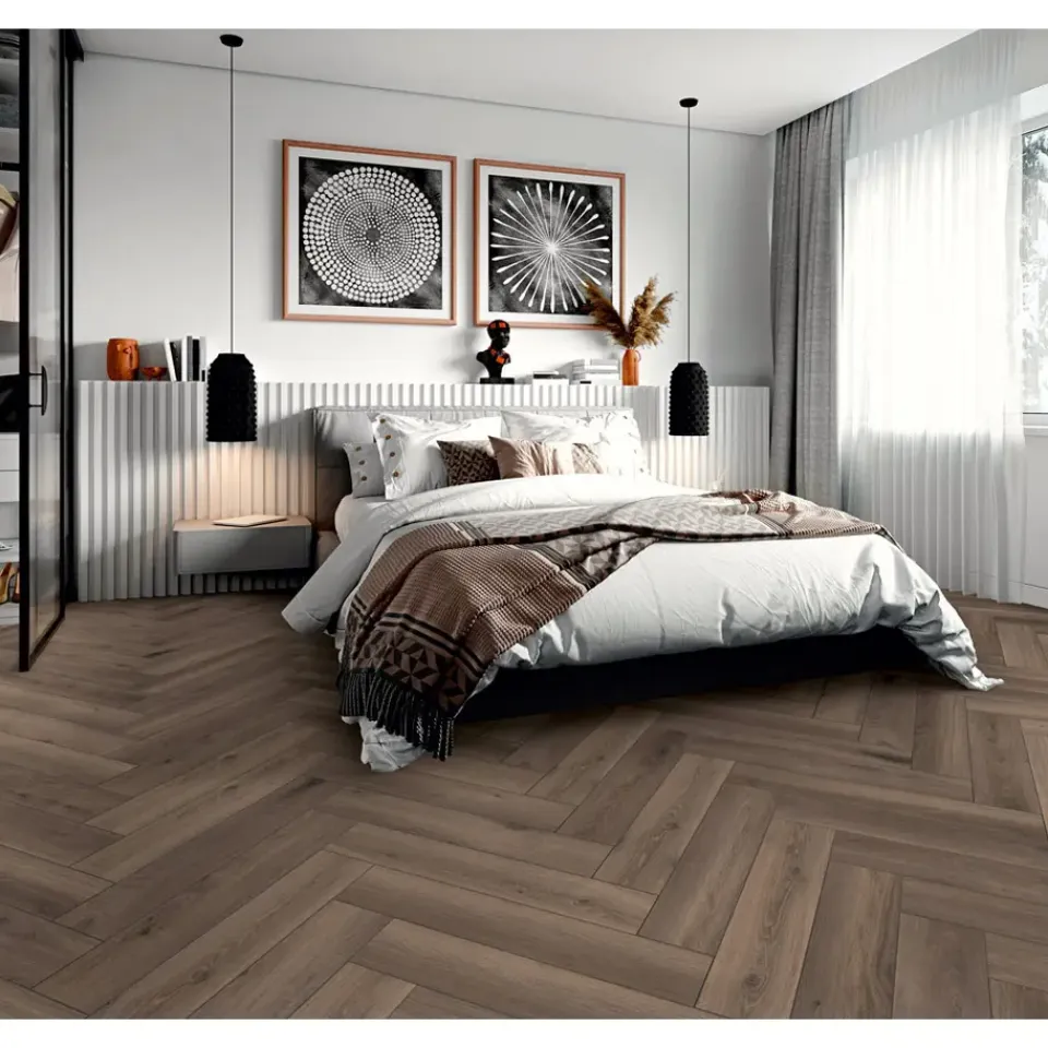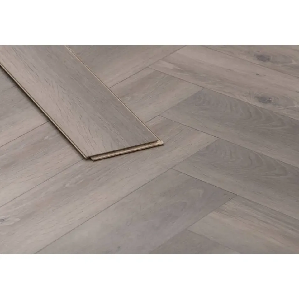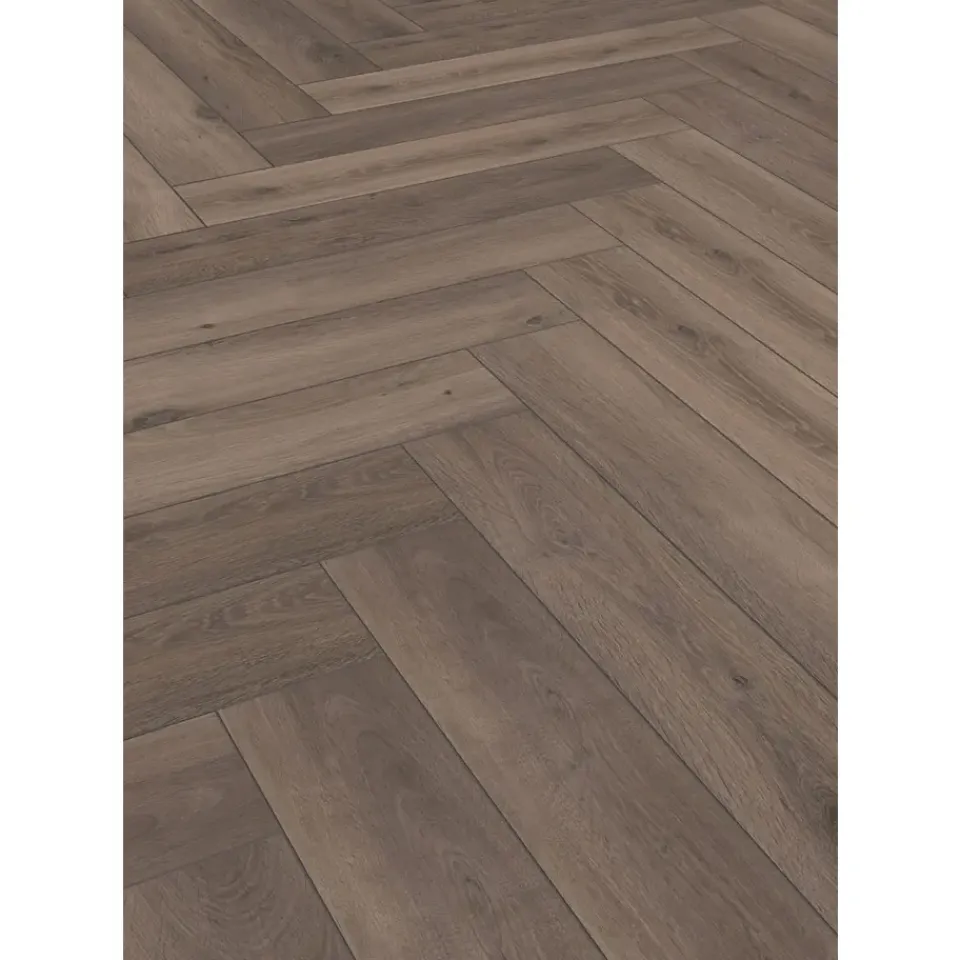 Laminaat Herringbone is een landelijk romantisch laminaat in de kleur donker eiken. Laminaat heeft veel voordelen. Het is heel gemakkelijk te leggen, vergt weinig onderhoud en laminaat is vele malen voordeliger dan een houten vloer. Deze laminaatvloer is te leggen in een visgraat dessin waardoor je veel charme en karakter toevoegt in je ruimte.
