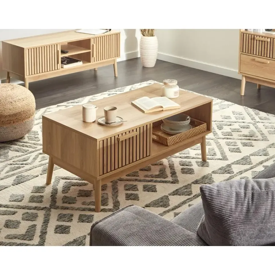 Belangrijkste eigenschappen: Functionele opbergruimte onder het tafelblad, Decoratief en functioneel, Hout-look finish voor een natuurlijke look, Solide afwerking, Hoge kwaliteit, Bescherm tegen hitte en vocht met onderzetters en placemats voor het beste onderhoud, Voldoende opbergruimte