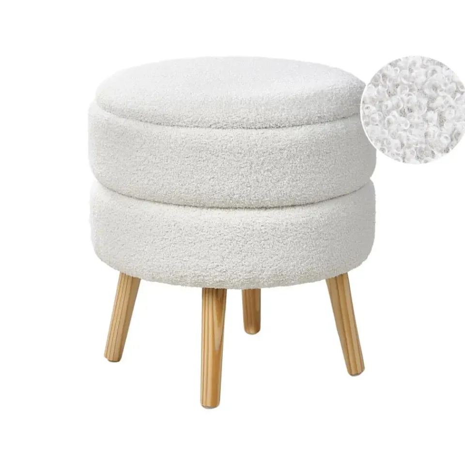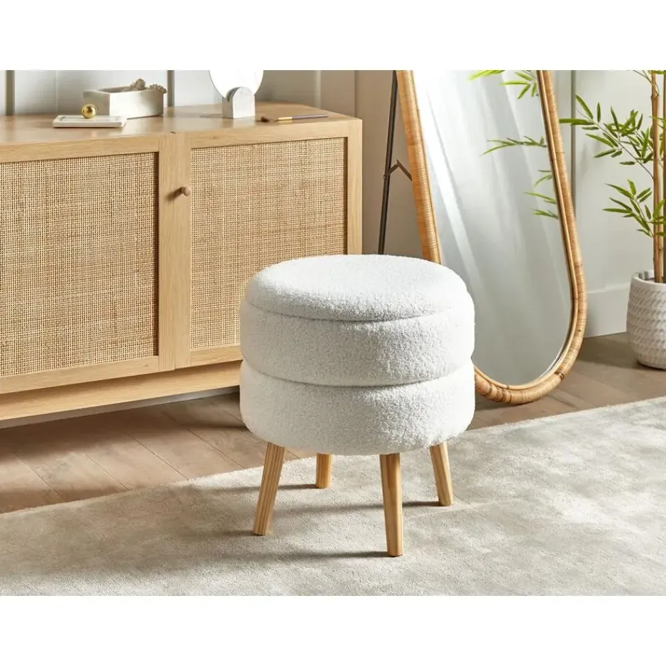 Leen Bakker OKATON – Hocker met opbergruimte – Wit – Bouclé