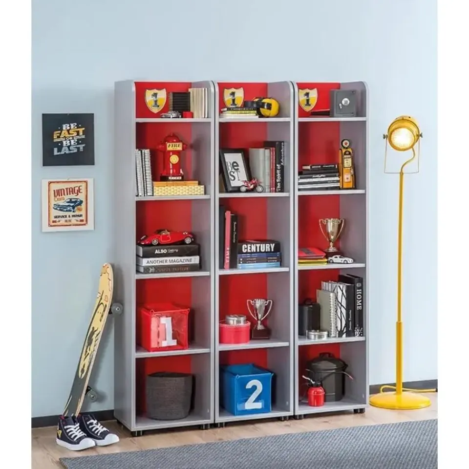 Je kiest voor deze boekenkast vanwege het unieke ontwerp met raceprints en de ruime indeling. Het ontwerp sluit perfect aan bij de Race Cup kamer en maakt opruimen leuker voor kinderen.