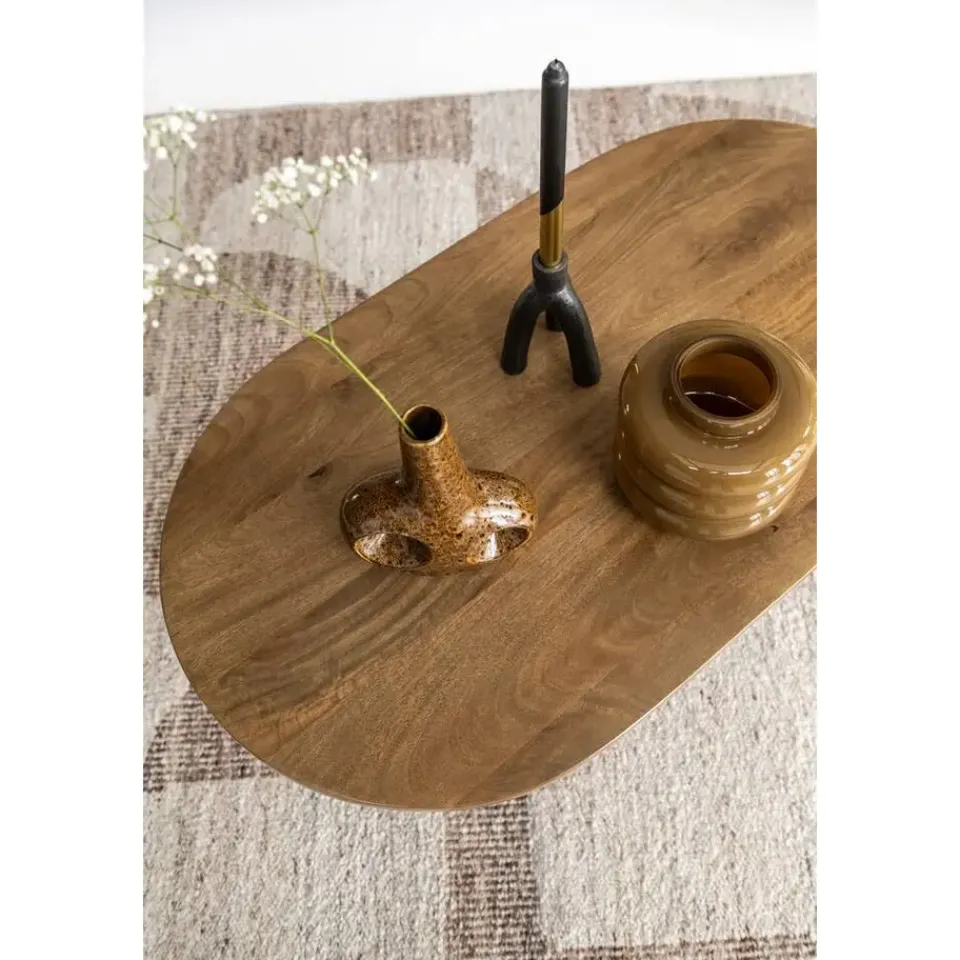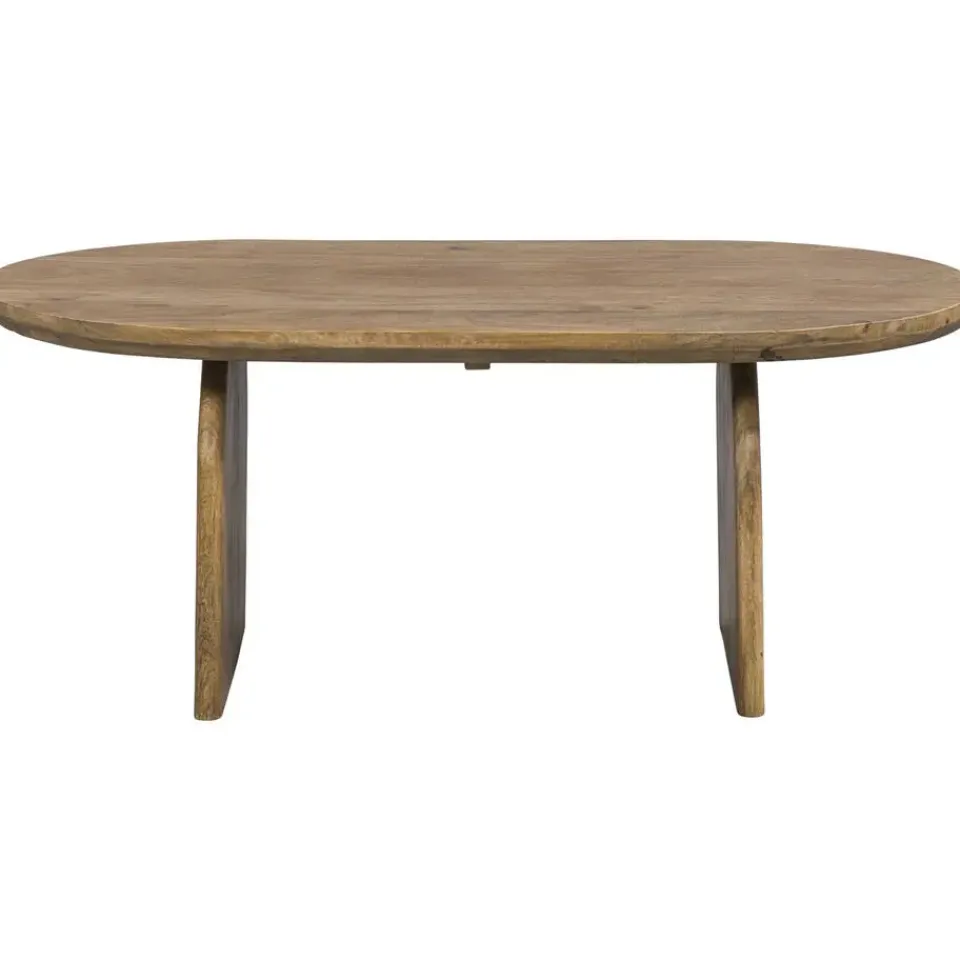 Salontafel Olivier heeft een natuurlijke ovale vorm en is gemaakt van mangohout. Ook het onderstel heeft ronde vormen en dat geeft deze tafel een geheel eigen look. De tafel heeft een lengte van 100 cm, een breedte van 50 cm en een hoogte van 40 cm.