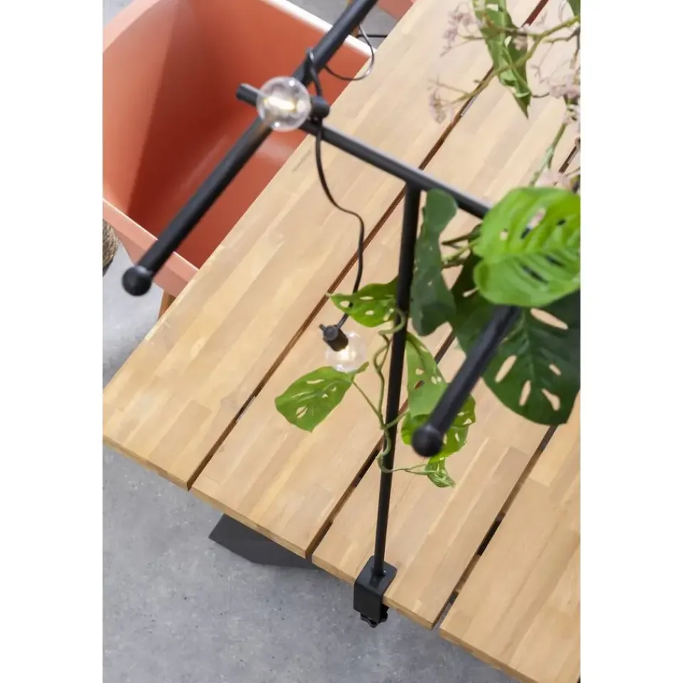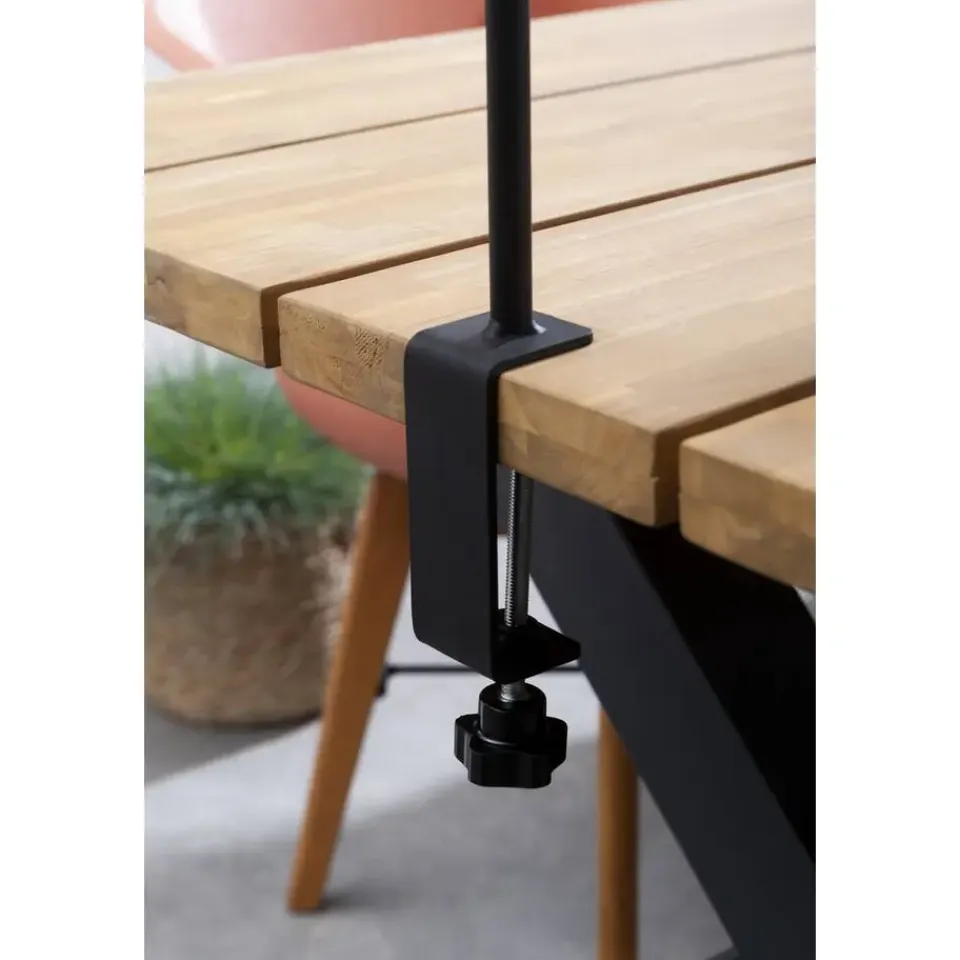 De Ton tafelklem, met zijn stoere zwarte metalen frame, brengt gezelligheid en functionaliteit samen. Deze verstelbare klem past op tafels met een dikte tussen 70-80 cm. De breedte is verstelbaar van 260 tot 290 cm, waardoor het de perfecte sfeer geeft voor elke gelegenheid. Of je nu binnen of buiten dineert, met de Ton tafelklem creëer je moeiteloos een sfeervolle eetruimte.