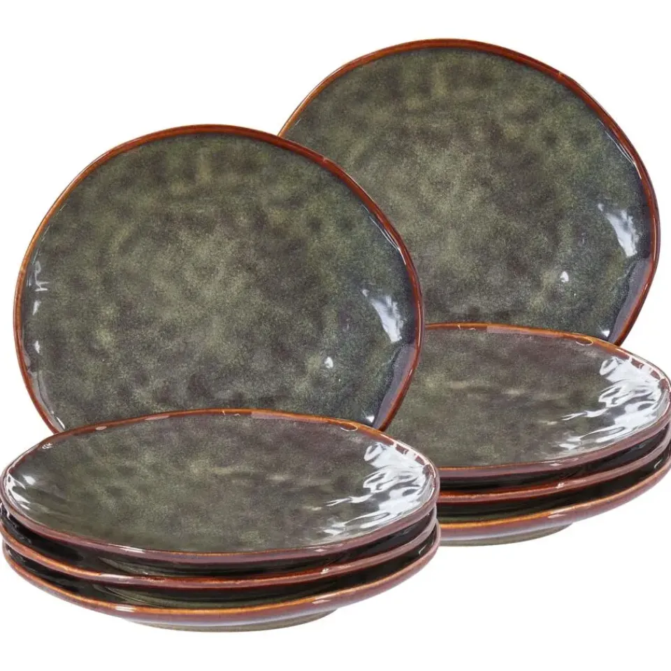 Handgemaakte dessertborden set voor 8 personen. Maak je eettafel af met deze set van 8 bijzetborden in een charmante donkergroene tint, ontworpen om zowel stijl als functionaliteit te bieden. Deze borden zijn handgemaakt van duurzaam steengoed, perfect voor dagelijks gebruik en gemakkelijk te onderhouden. Elk bord is afgewerkt met een prachtig reactief glazuur, waardoor elk bord een uniek meesterwerk is. Met hun royale afmetingen en unieke ontwerp brengen deze borden elegantie in elke maaltijd. Bovendien zijn ze vaatwasmachine- en magnetronbestendig, waardoor ze net zo handig als mooi zijn.