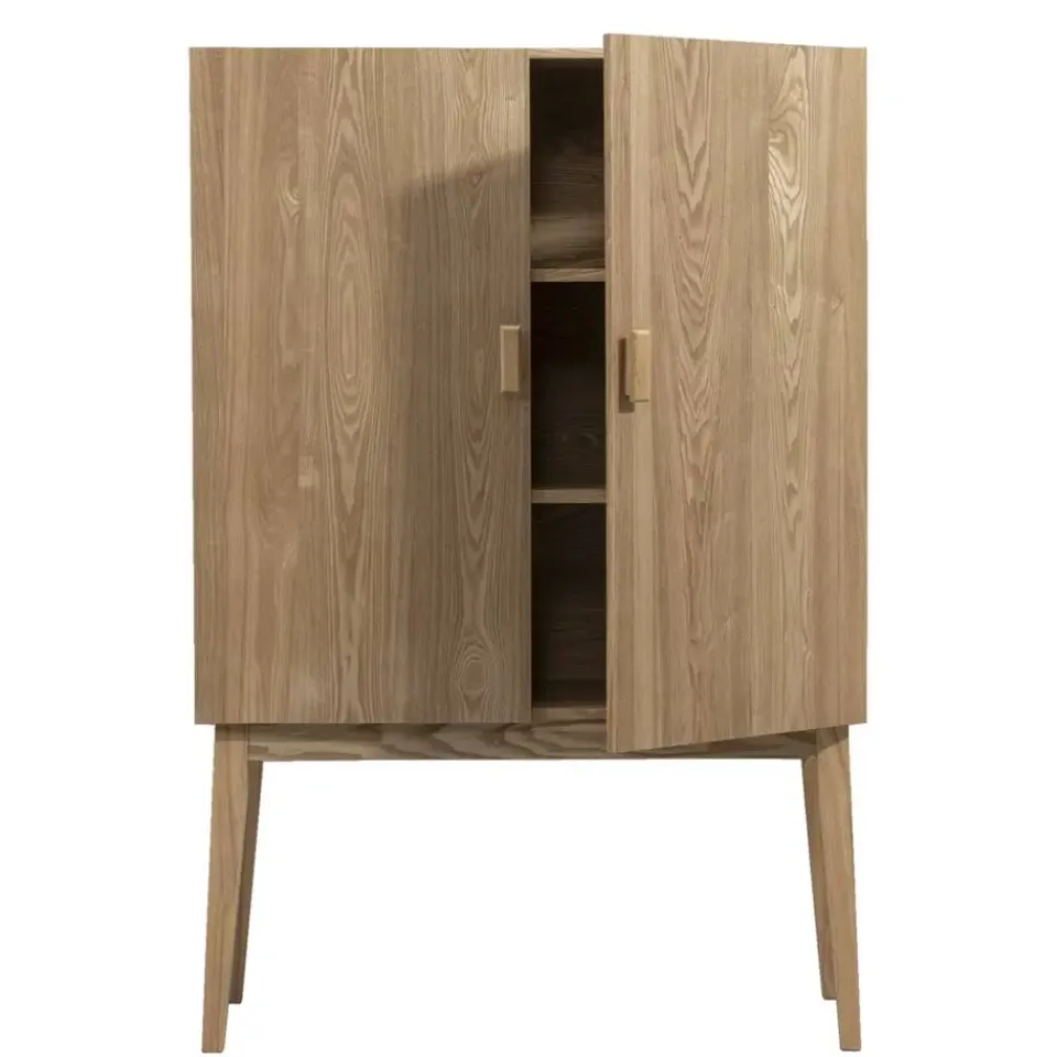 Kast Enea heeft een superleuke retro look en biedt alle ruimte om al jouw spullen in op te bergen. Deze kast staat op houten pootjes en is gemaakt van MDF met een essen naturel fineer. De trend van nu is modern retro en dat zie je terug in dit leuke kastje.