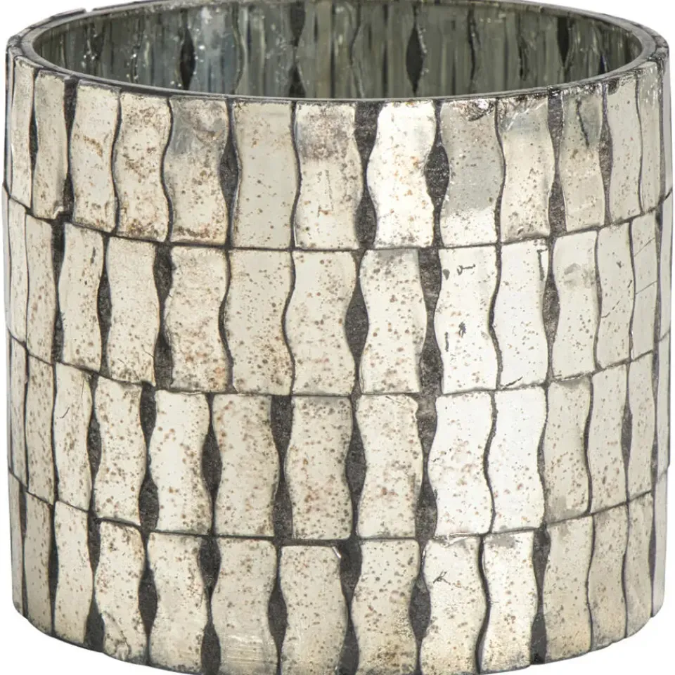 Deze waxinelichthouder van bruin glas, 10 cm hoog en 11 cm in diameter, is een sfeervolle toevoeging aan je interieur. De buitenzijde is bekleed met roestige spiegeltjes die zorgen voor een stoere, industriële uitstraling. Het bruine glas geeft een warme, zachte gloed wanneer er een kaarsje in brandt, wat zorgt voor een gezellige en intieme sfeer. Dankzij het stevige materiaal staat de houder stabiel en is hij geschikt voor standaard waxinelichtjes. Door het robuuste en unieke design krijgt je woonruimte een karakteristieke en stijlvolle look, perfect voor zowel dagelijks gebruik als speciale gelegenheden. Met deze kaarshouder voeg je eenvoudig een warme en authentieke sfeer toe aan elke kamer.