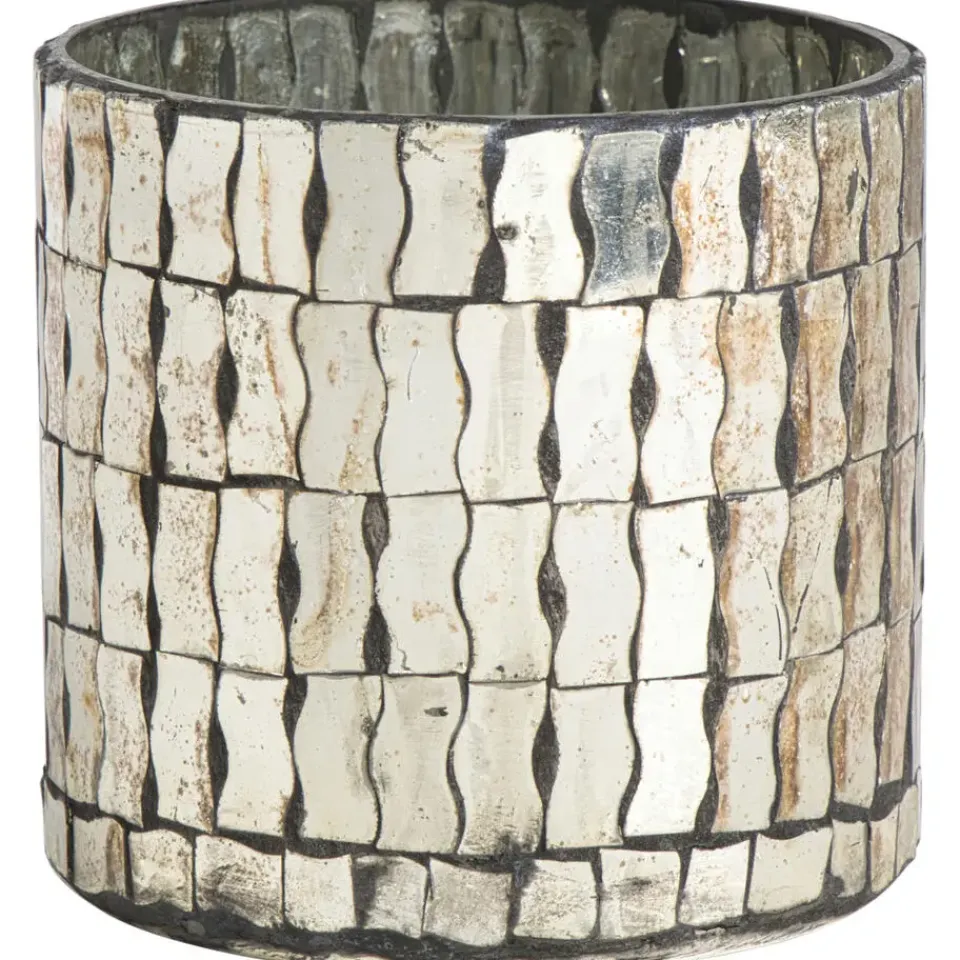 Deze waxinelichthouder van bruin glas is 11 cm hoog en heeft een diameter van 11 cm, wat zorgt voor een iets hogere, elegante uitstraling. De buitenzijde is voorzien van roestige spiegeltjes die het geheel een robuuste, industriële look geven. Het bruine glas verspreidt een warme, zachte gloed zodra er een kaarsje brandt, wat bijdraagt aan een gezellige en uitnodigende sfeer in huis. Dankzij het stevige materiaal blijft de houder stabiel staan en is hij geschikt voor standaard waxinelichtjes. Met dit unieke en stijlvolle ontwerp geef je jouw interieur een karaktervolle en sfeervolle touch, perfect voor zowel dagelijks gebruik als speciale momenten. Voeg met deze kaarshouder eenvoudig een warme en authentieke sfeer toe aan iedere ruimte.