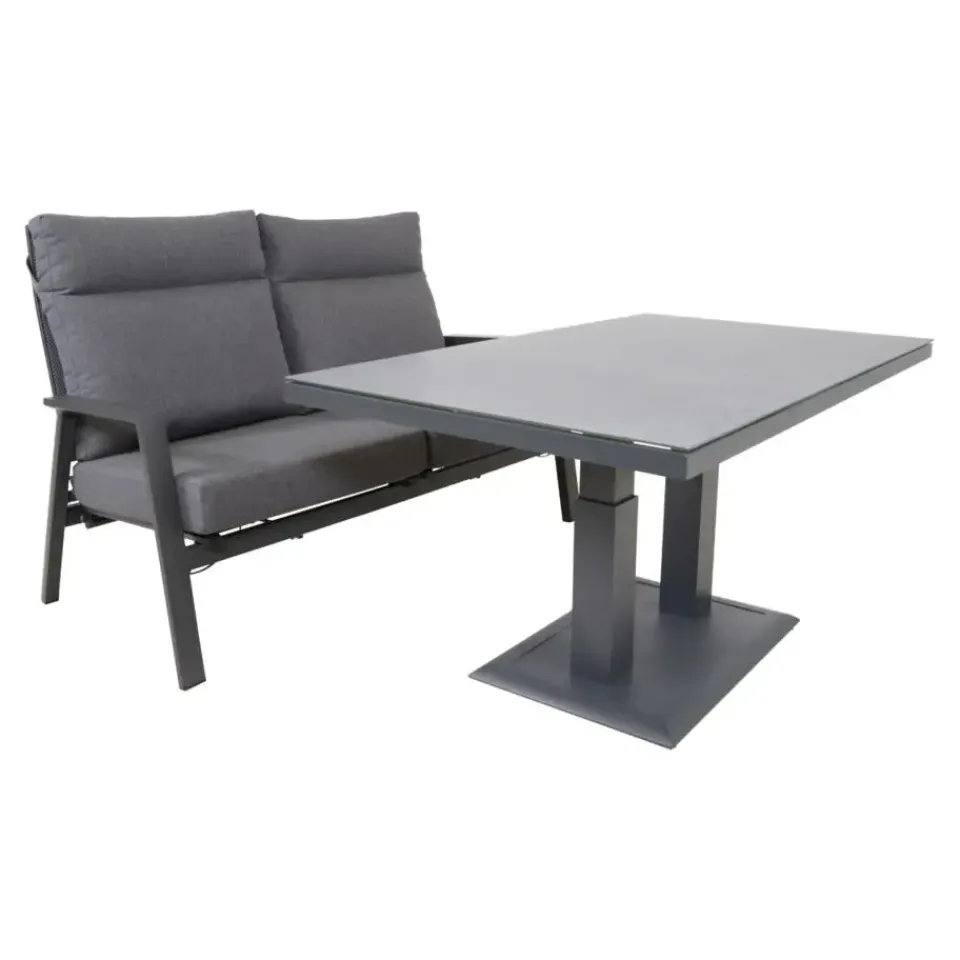 De Ohio 2-persoons loungebank is een perfecte aanvulling op elke buitenruimte. Met zijn compacte formaat en toch ruime zitting biedt deze bank comfortabele zitplaatsen voor twee personen. Het moderne ontwerp, gecombineerd met hoogwaardige materialen, zorgt voor duurzaamheid en stijl. Of het nu op een balkon, terras of in de tuin is, de Ohio loungebank creëert een gezellige sfeer om te ontspannen en te genieten van de buitenlucht. Met zijn weerbestendige eigenschappen kan deze loungebank het hele jaar door buiten blijven staan, waardoor je altijd een comfortabele plek hebt om te relaxen, te lezen of te genieten van een goed gesprek.