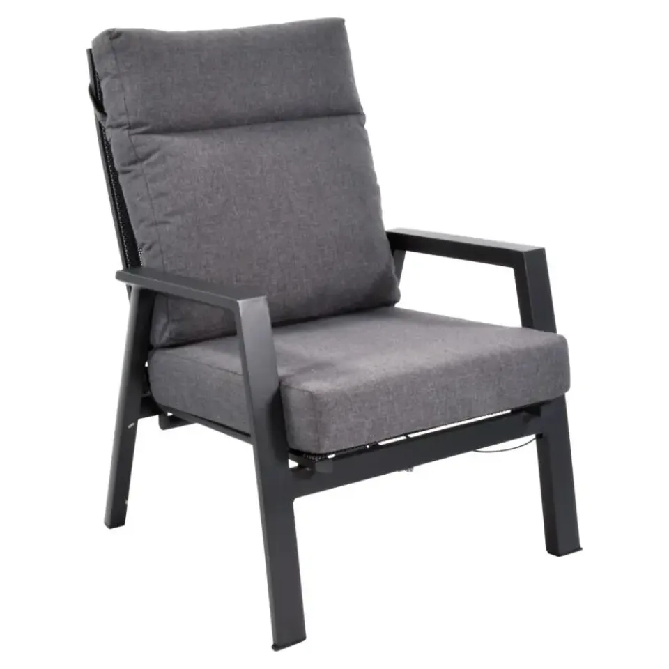 De loungestoel Ohio is een stijlvolle en comfortabele toevoeging aan elke buitenruimte. Met zijn moderne design straalt de Ohio loungestoel luxe en ontspanning uit. Het stevige frame zorgt voor duurzaamheid en stabiliteit, ideaal voor langdurig gebruik buiten. De dikke kussens zijn bekleed met hoogwaardige stof, bestand tegen verschillende weersomstandigheden, wat zorgt voor uitstekend zitcomfort. De ergonomische vorm ondersteunt je lichaam perfect, waardoor je heerlijk kunt ontspannen. Het eenvoudige en elegante ontwerp past moeiteloos in diverse buiteninrichtingen, van moderne terrassen tot klassieke tuinen. Of je nu leest, geniet van een drankje, of het uitzicht bewondert, de Ohio loungestoel biedt de ideale plek om te ontspannen.