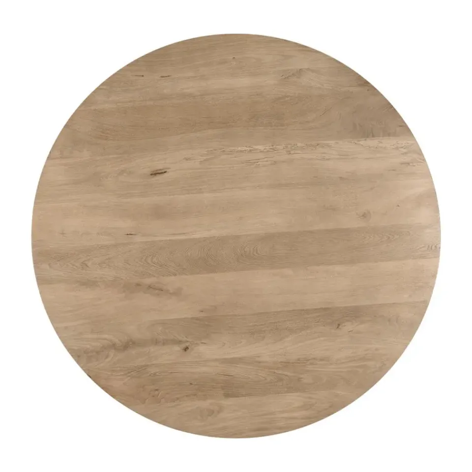 Deze ronde eettafel van mangohout is gemaakt van FSC®-gecertificeerd hout, afkomstig uit verantwoord beheerde bossen. Het mangohout staat bekend om zijn duurzaamheid, harde structuur en warme uitstraling. De naturelle afwerking benadrukt de natuurlijke houtnerf en maakt elke tafel uniek. Zo haal je een stukje natuur in huis, zonder in te leveren op kwaliteit of stijl.