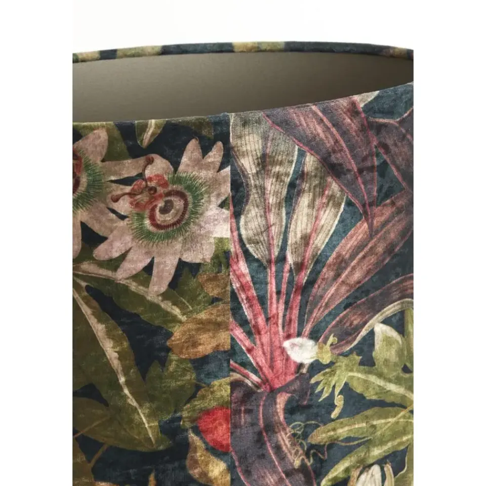 Lampenkap Passion heeft een prachtige chique bladerprint en is daarmee een echte eyecatcher. De donkere en heldere kleuren van de kap zorgen voor een sfeervolle en warme uitstraling. Doordat de kap een ovale, platte vorm hebt is het gemakkelijk om deze op een kastje of tafeltje te zetten zonder dat deze veel ruime inneemt. Plaats deze lampenkap in een chique en luxe interieur voor een mooi geheel. De afmeting van de kap is 38×17,5×28 cm.
