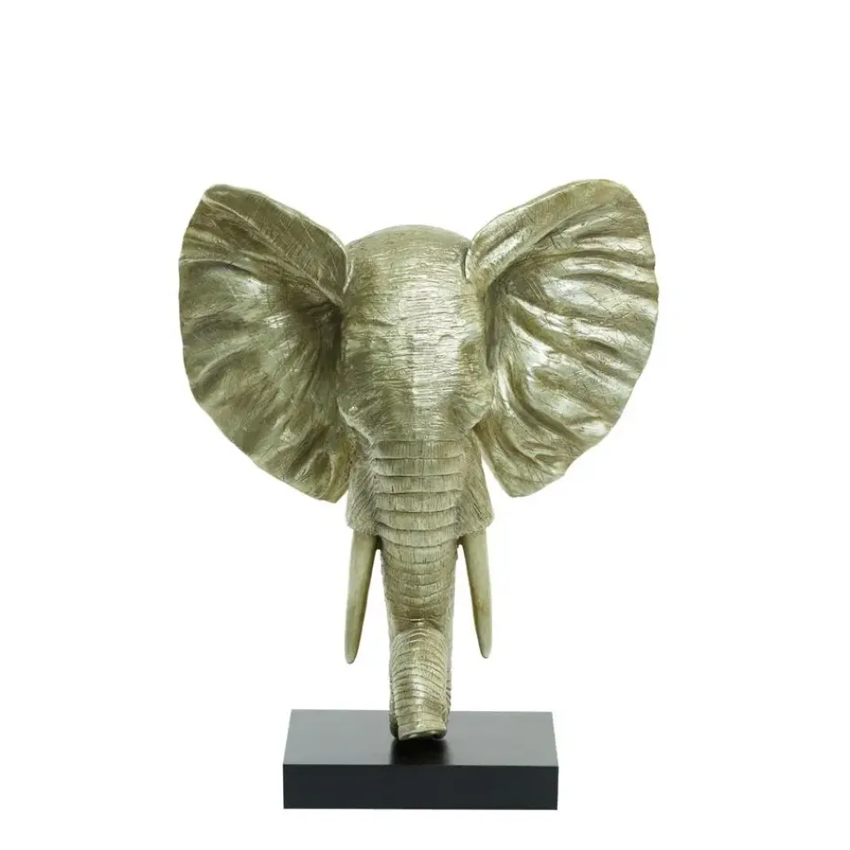 Geef je woonkamer pit met het Olifant ornament. Dit indrukwekkende stuk toont een majestueuze gouden olifant in een statische pose, gemonteerd op een strak zwart frame. Met zijn afmetingen van 38,5×19,5x49cm straalt hij een imponerende aanwezigheid uit zonder je ruimte te overweldigen. Het monochrome kleurenschema ademt verfijning uit, terwijl de edele vorm van de olifant een vleugje tijdloze schoonheid toevoegt. Dit ornament is gegarandeerd een gespreksstarter en een geliefd middelpunt in je huis.