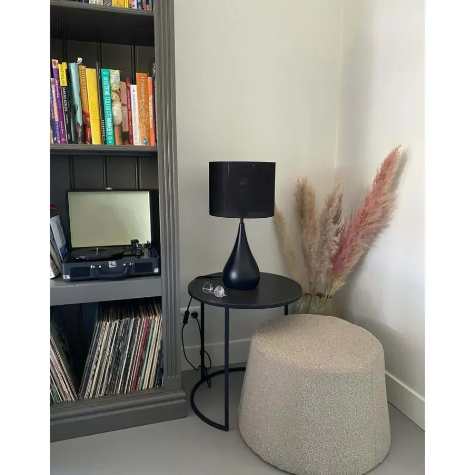 De Svante tafellamp heeft een moderne lampvoet met een matte zwarte afwerking. De lampenkap heeft een diameter van 28 cm en is gemaakt van materialen zoals katoen en polyester. Met zijn moderne design en retro-karakter is deze lamp ideaal voor gebruik als tafel-, bureau- of leeslamp in elk interieur. De afmetingen van dit product zijn 28x28x50 cm.