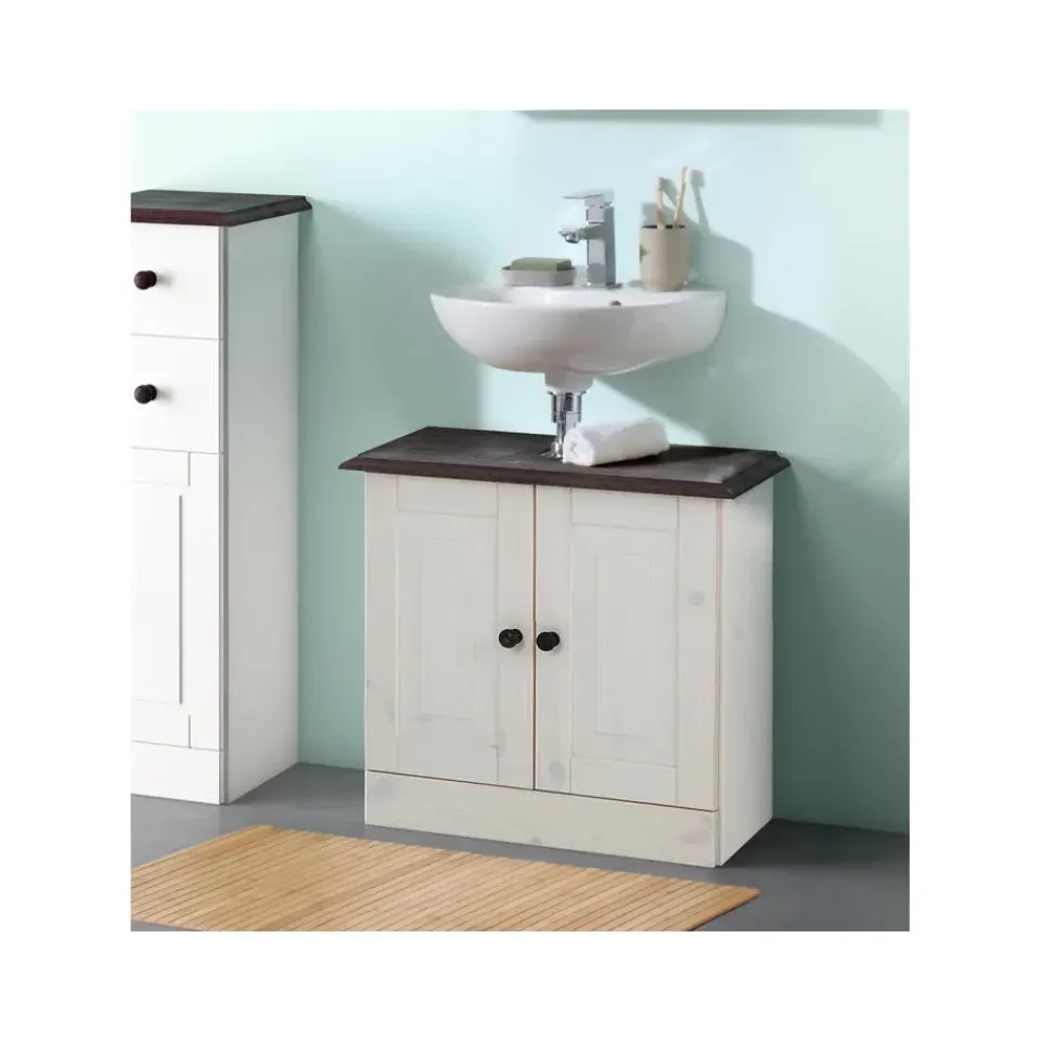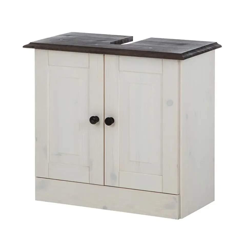 Dankzij de aantrekkelijke houten look geeft dit wastafelmeubel je badkamer een natuurlijke touch en straalt het een huiselijke, landelijke charme uit. De onderkast is gemaakt van FSC®-gecertificeerd grenen en heeft onderhoudsvriendelijke oppervlakken. Dankzij het slanke ontwerp is het ideaal voor kleine ruimtes en biedt het toch opbergruimte. Een open vak zit verborgen achter twee deuren. Een praktische sifonuitsparing is al beschikbaar. Ontdek ook andere meubels uit de Cornelia-serie die worden gekenmerkt door een mooie nerf en een traditioneel landhuiskarakter en overtuig uzelf van de kwaliteit Made in Europe.