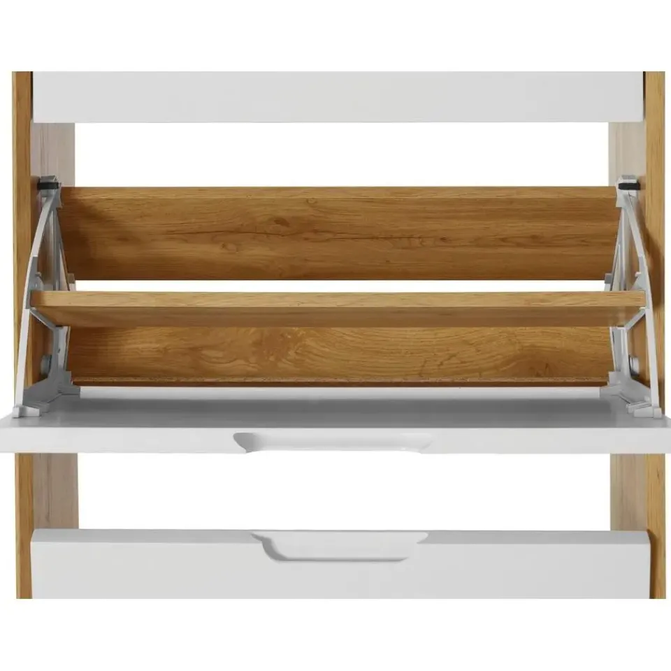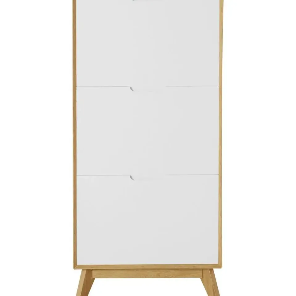 Deze vrijstaande schoenenkast geeft je extra opbergruimte om je schoenen goed beschermd in op te bergen. De kast met drie kleppen is grotendeels gemaakt van massief hout, waardoor hij erg stevig is. De puristische verzonken handgrepen zijn duurzaam en onderstrepen de stijl. Je nieuwe meubelstuk kan tot 20 kg worden belast. Hout gaat goed samen met andere natuurlijke materialen en delicate kleuren zoals crème, beige of grijs. De schoenenkast is verkrijgbaar in twee kleuren en twee maten en voegt een vleugje Scandinavisch wonen toe aan je huis.