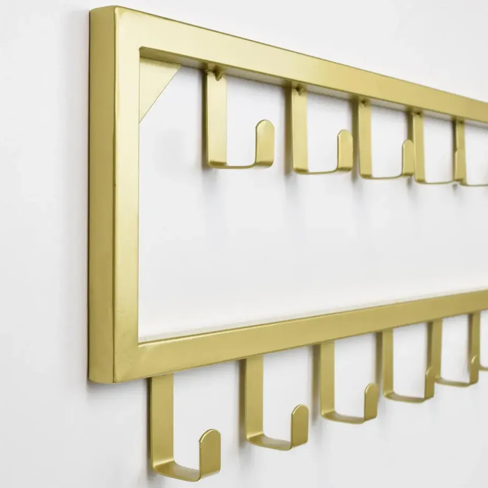 Voor een opgeruimde gang is een kapstok essentieel. De wandkapstok is hierbij het meest gebruikte item. Door je jas op te hangen aan de wand, blijft de vloer vrij en behoud je meer ruimte! De LOFT42 Bono is gemaakt van sterk en robuust metaal afgewerkt met goud. De grote haken bieden 15 ophang mogelijkheden. Hierdoor heb je extra veel ruimte om alle jassen van jou en je bezoek op te hangen.