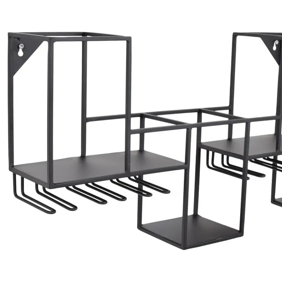 Het zwart metalen frame geeft dit wijnrek een stoere en industriële uitstraling, terwijl de strakke lijnen en het eigentijdse ontwerp perfect passen bij uiteenlopende interieurstijlen. Of je nu een loft, een modern appartement of een klassiek huis hebt, dit wijnrek voegt een vleugje verfijning toe aan elke kamer.
