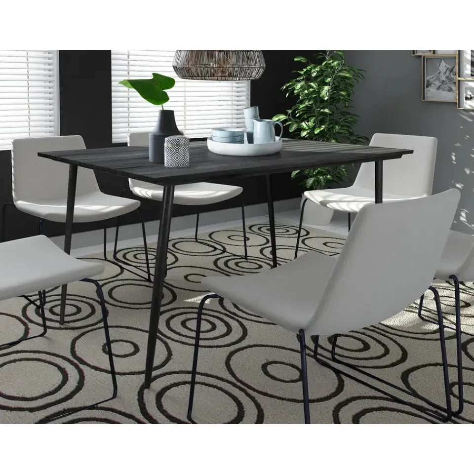 De hoogwaardige houten eettafel creëert een puristische sfeer in je eetkamer. Hij inspireert met zijn Scandinavische ontwerp en prachtige nerf. Het donkere metalen frame zorgt voor een aantrekkelijk contrast. De eettafel kan perfect gecombineerd worden met moderne en tijdloze meubels. Je kunt kiezen uit verschillende maten en kleuren, zodat je hem harmonieus kunt integreren in je bestaande interieur. Het eetmeubel heeft een stevig MDF-blad. Het heeft een onderhoudsvriendelijk oppervlak voor moeiteloze reiniging.