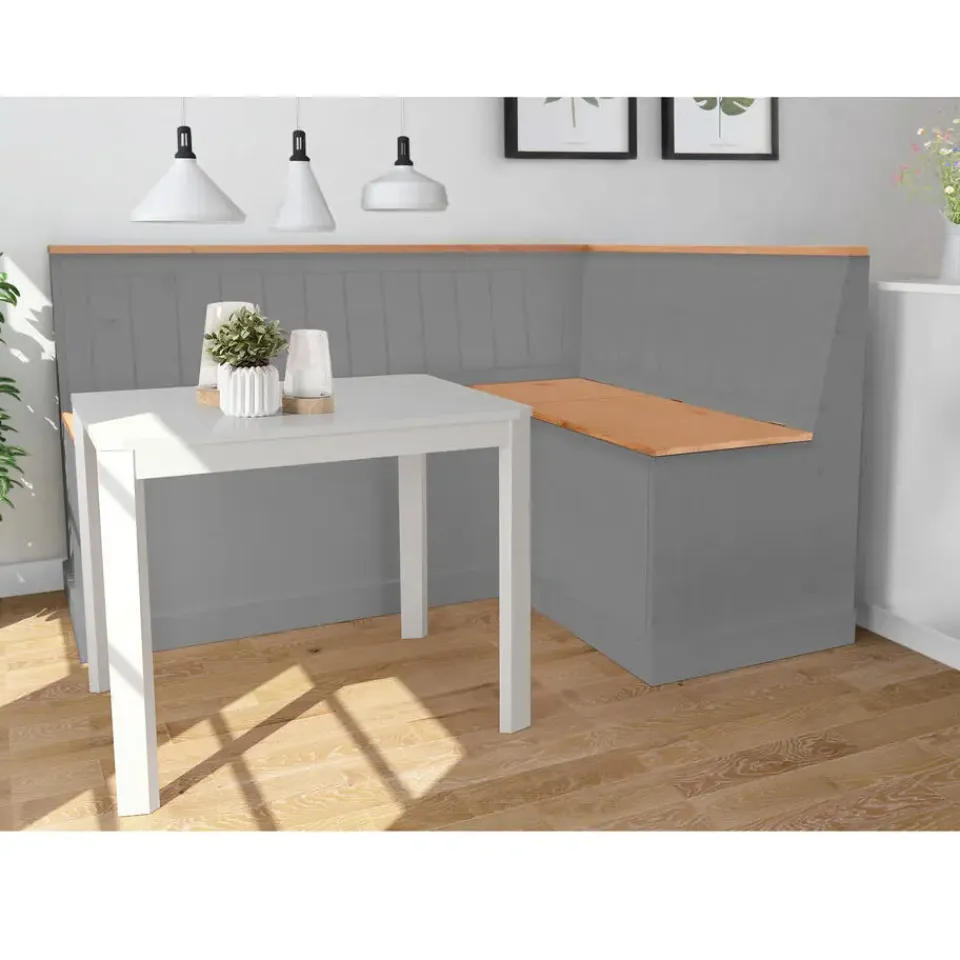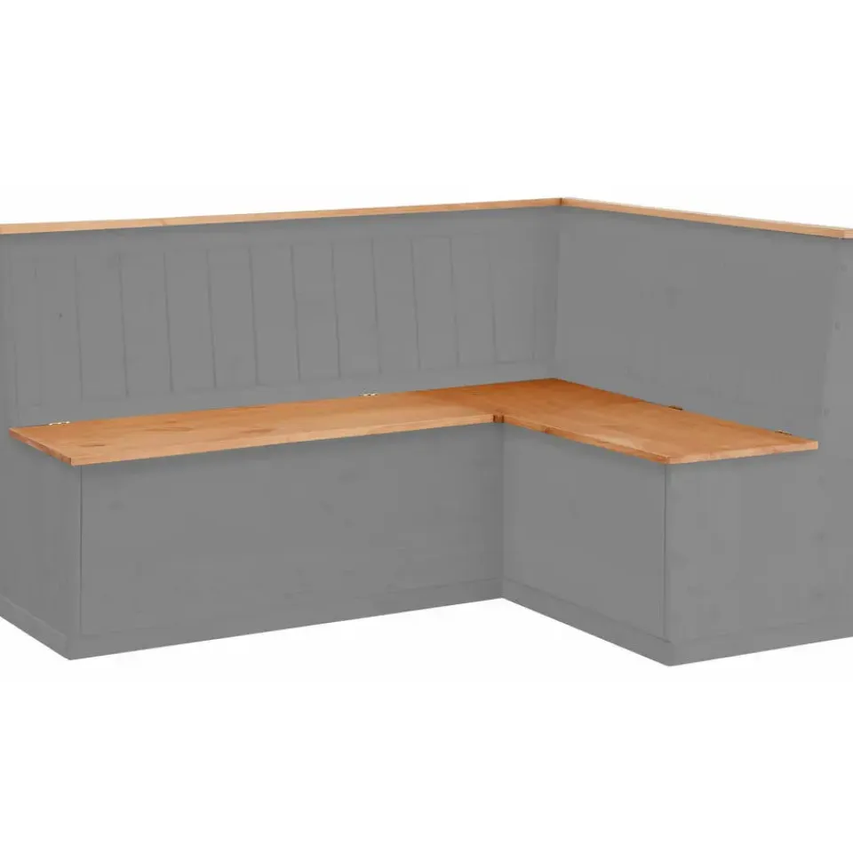 De hoekbank met praktische opbergruimte straalt een natuurlijke flair uit in de inrichting van je eetkamer. Hij vult je interieur aan in de trendy landelijke stijl en is ontworpen met prachtige houtlook accenten. Met zijn ingetogen kleuren kan de bank gemakkelijk gecombineerd worden met je bestaande inrichting. Onder de zitting is handige opbergruimte voor bijvoorbeeld kussens textiel of woonaccessoires. De bank is gemaakt van hoogwaardig massief grenen. De hoekbank met praktische opbergruimte past in elke woonstijl.