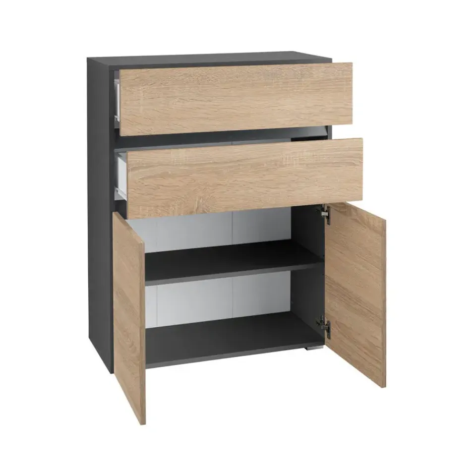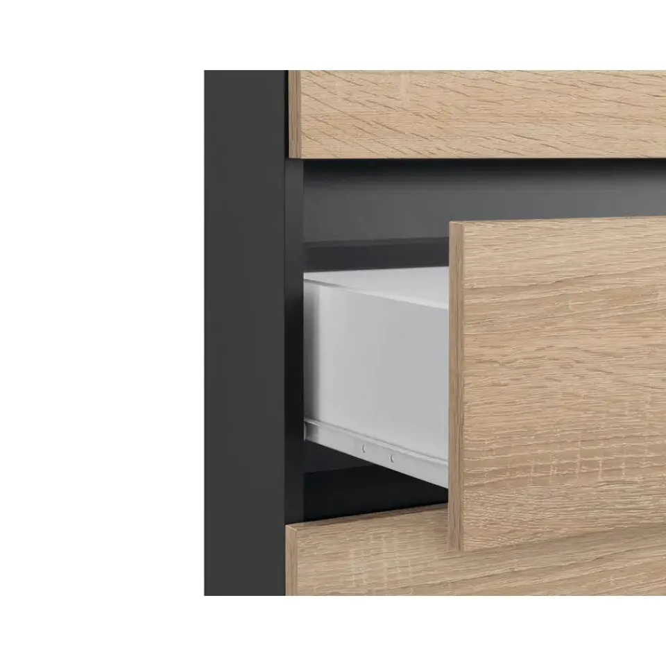 Het greeploze ontwerp van het midi badkamermeubel bespaart ruimte en houdt je badkamer netjes. De puristische look van dit opbergmeubel is het resultaat van een hoogwaardige afwerking en interessante uitsparingen. De monochrome kleur maakt dit meubel een makkelijke toevoeging aan je huis en kan gecombineerd worden met verschillende inrichtingsstijlen. De onderhoudsvriendelijke oppervlakken maken schoonmaken een fluitje van een cent. Achter de twee deuren kun je schoonmaakproducten opbergen. Twee lades bieden extra opbergruimte.