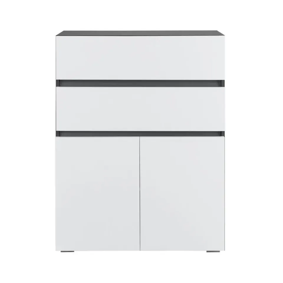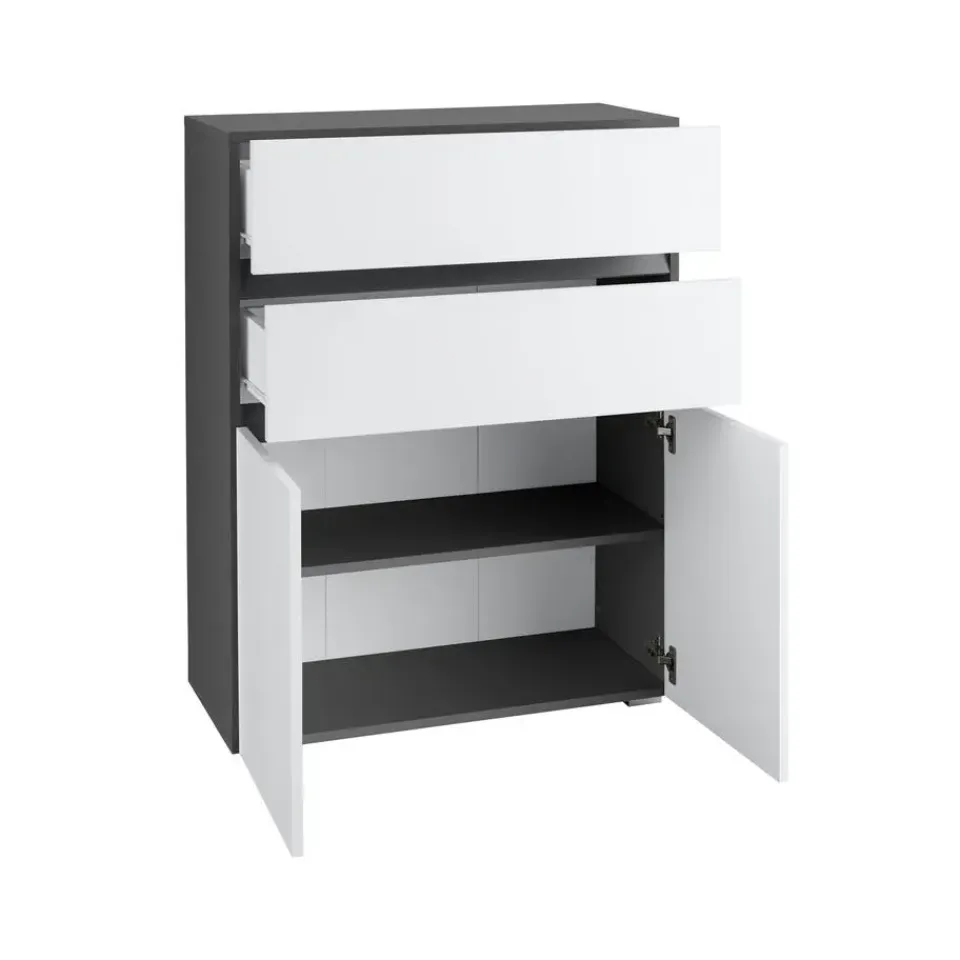 Het greeploze ontwerp van het midi badkamermeubel bespaart ruimte en houdt je badkamer netjes. De puristische look van dit opbergmeubel is het resultaat van een hoogwaardige afwerking en interessante uitsparingen. De monochrome kleur maakt dit meubel een makkelijke toevoeging aan je huis en kan gecombineerd worden met verschillende inrichtingsstijlen. De onderhoudsvriendelijke oppervlakken maken schoonmaken een fluitje van een cent. Achter de twee deuren kun je schoonmaakproducten opbergen. Twee lades bieden extra opbergruimte.