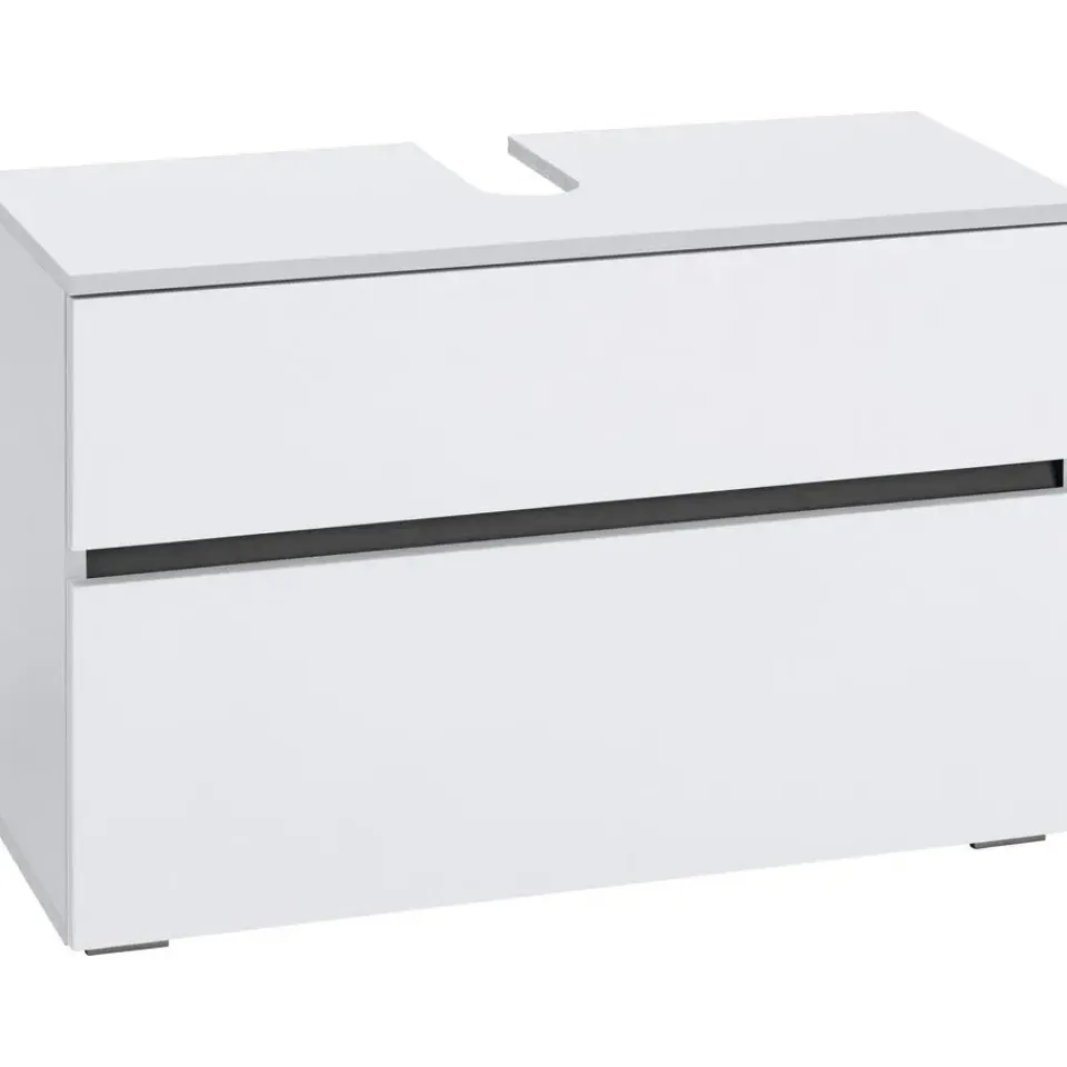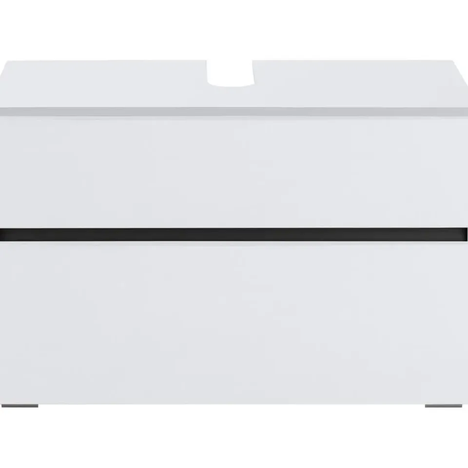 Met zijn moderne, tijdloze ontwerp is het universele badmeubel een uitstekende aanvulling voor je badkamer of gastentoilet. Het tweekleurige ontwerp en de tijdloze uitstraling passen bij verschillende inrichtingsstijlen. De voorkant van de onderkast heeft geen handgrepen, wat het strakke ontwerp accentueert. De lade en klep zijn eenvoudig te openen dankzij de push-to-open functie. De bovenkant van de spiegelkast heeft een uitsparing voor de sifon. Binnenin biedt de kast voldoende opbergruimte voor toiletartikelen en badkamerspullen. De spiegelkast heeft platte vierkante poten van vochtbestendige kunststof. Het badkamermeubel zelf is gemaakt van FSC®-gecertificeerde houten materialen, met oppervlakken die zijn afgewerkt met een onderhoudsvriendelijke matte coating. Het ruimtebesparende ontwerp is perfect voor kleine badkamers. Verkrijgbaar in andere kleuren.
