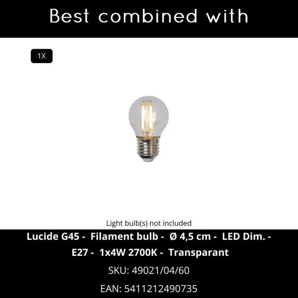 • Verbruik: 1x60W / 230V / Dimbaar (lichtbron niet inbegrepen)