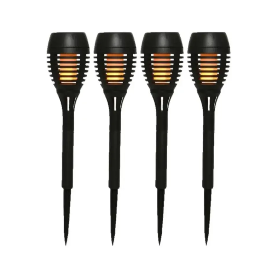 4x stuks Solar licht tuinlampen/fakkels ovaal, met vlam effect LED verlichting voor de tuin. De lamp werkt op zonne-energie waardoor het zichzelf oplaadt gedurende de dag. Inclusief grondpin, zodat u ze bijvoorbeeld langs een looppad kunt zetten. Schakelaar: ja. Kleur licht: vlam. Kleur lamp: zwart. Afmeting: 7 x 27 cm. De batterijen kunnen worden vervangen. Tuinlampen/tuinverlichting/prikspots op zonne-energie.