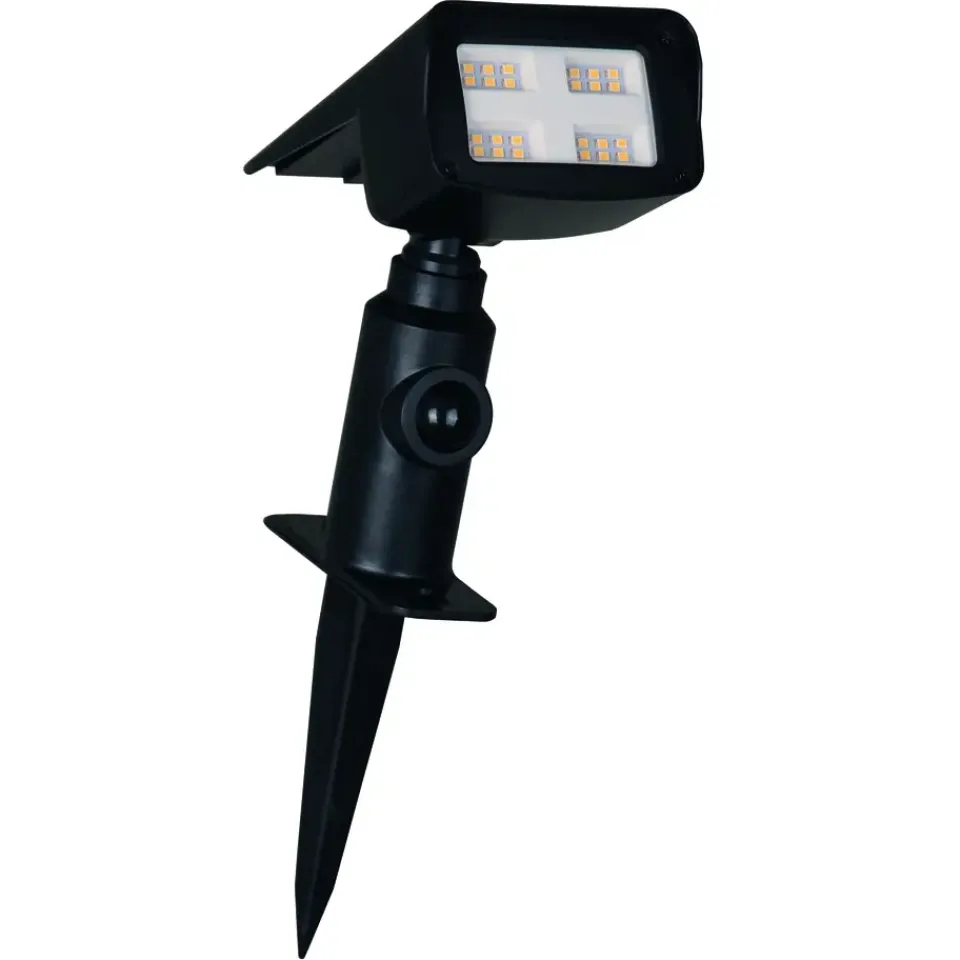 De intelligente Security solar spot Rosario van Luxform is een fantastische spot die op 2 verschillende manieren toegepast kan worden. De Rosario wordt namelijk standaard met een wandbeugel en een grondsteker geleverd. Hierdoor kan de lamp op zowel vlakke oppervlakten gemonteerd worden en ook in zachte ondergronden gestoken worden. De kunststof spot is voorzien van een bewegingssensor die ervoor zorgt dat er bij beweging binnen 8 mtr afstand van de spot de lamp feller gaat branden. De 24 warm witte SMD-LEDs geven standaard een lichtstraal van 30 lumen en bij activatie van de sensor zullen ze voor 30 seconden lang tezamen 600 Lumen licht geven. De Rosario als wandlamp is erg handig bij de voor- of achterdeur, zodat bij thuiskomst er voldoende licht aanwezig is om de woning te betreden. Onder een boom of grote plant zal de spot ervoor zorgen dat deze fantastisch uitgelicht wordt en in een mooie lichtbundel komt te staan.
