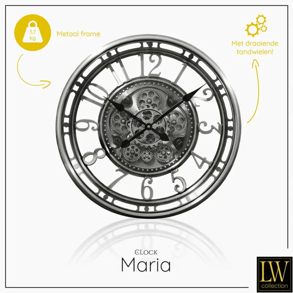 Bent u op zoek naar een luxe radar wandklok die uw woonkamer, slaapkamer of andere ruimte in huis compleet maakt? U kunt uw zoektocht staken! LW Collection biedt een breed assortiment aan wandklokken met draaiende tandwielen voor diverse interieurstijlen. Zo ook deze prachtige klok met een afmeting van maar liefst 54cm uit de serie MARIA.