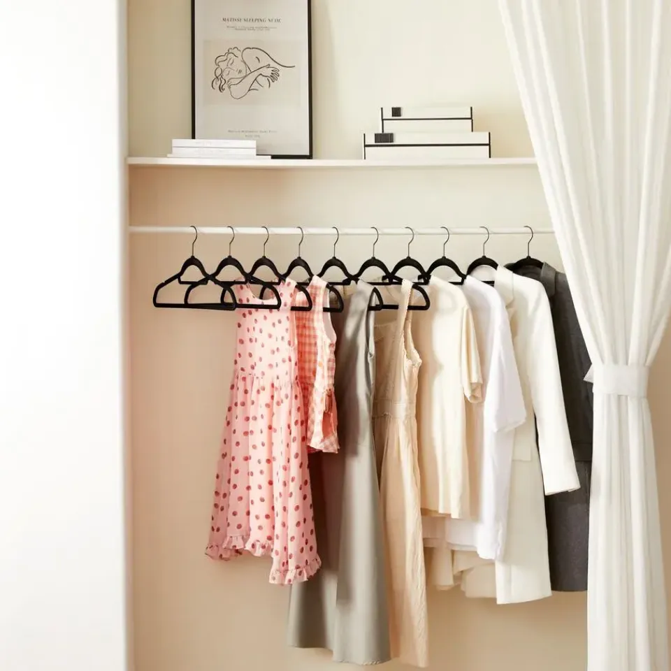✔ Anti-Slip: de kledinghangers hebben een fluwelen voering. Hierdoor zal je kledij blijven hangen en niet van de kledinghanger afglijden.