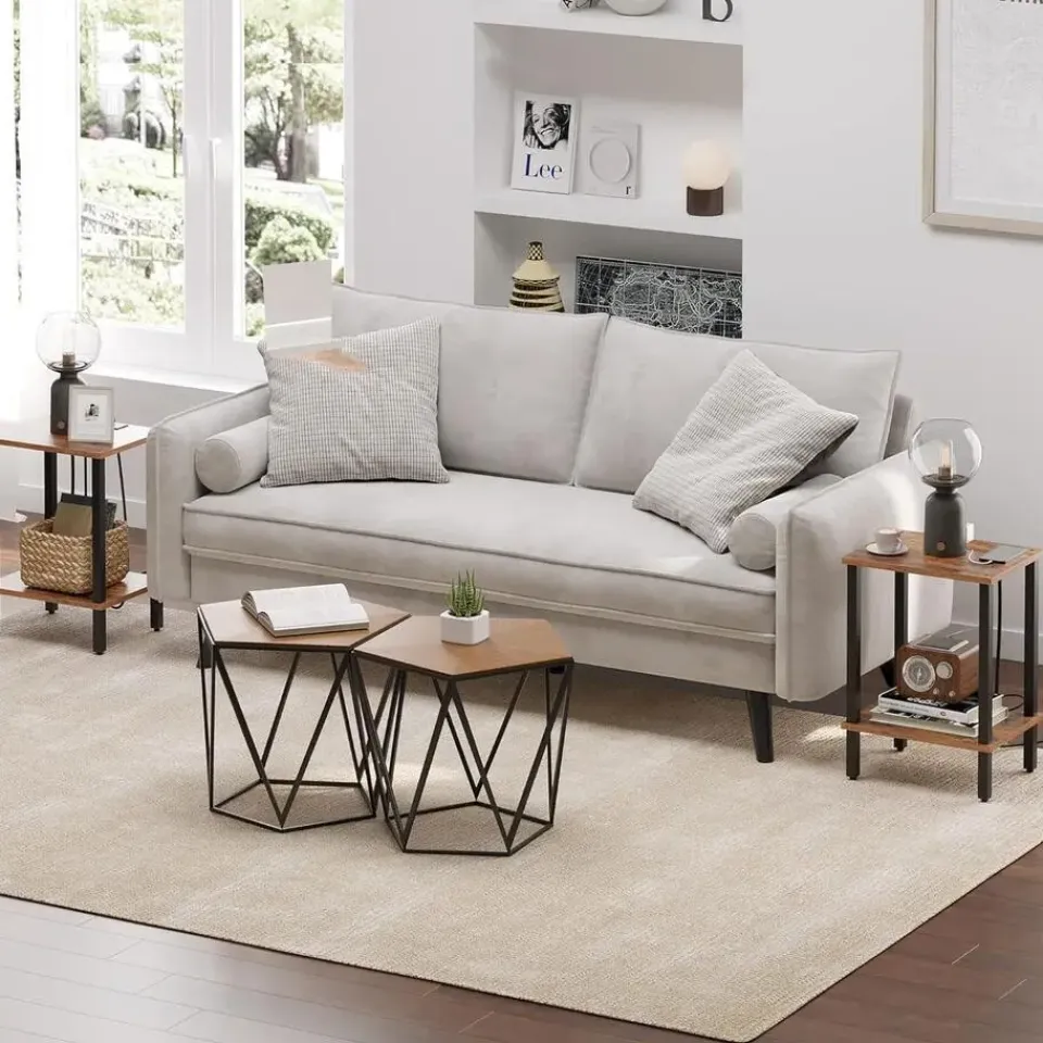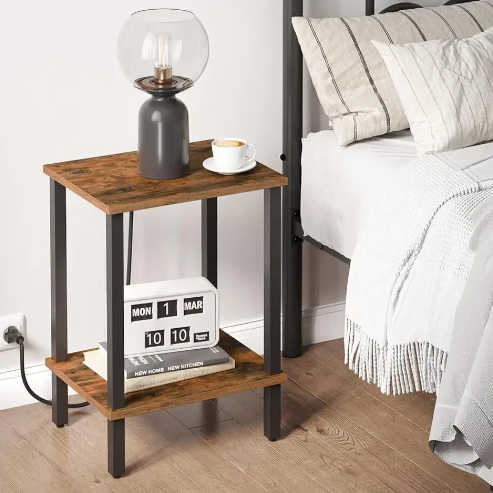 Met zijn open planken aan de boven- en onderkant biedt deze bijzettafel voldoende opbergruimte voor diverse spullen. Het is een veelzijdig meubelstuk dat kan worden gebruikt als drinktafel, salontafel, snacktafel, bijzettafel bij de bank, haltafel, haltafel of nachtkastje in slaapkamers, slaapkamers en woonkamers.