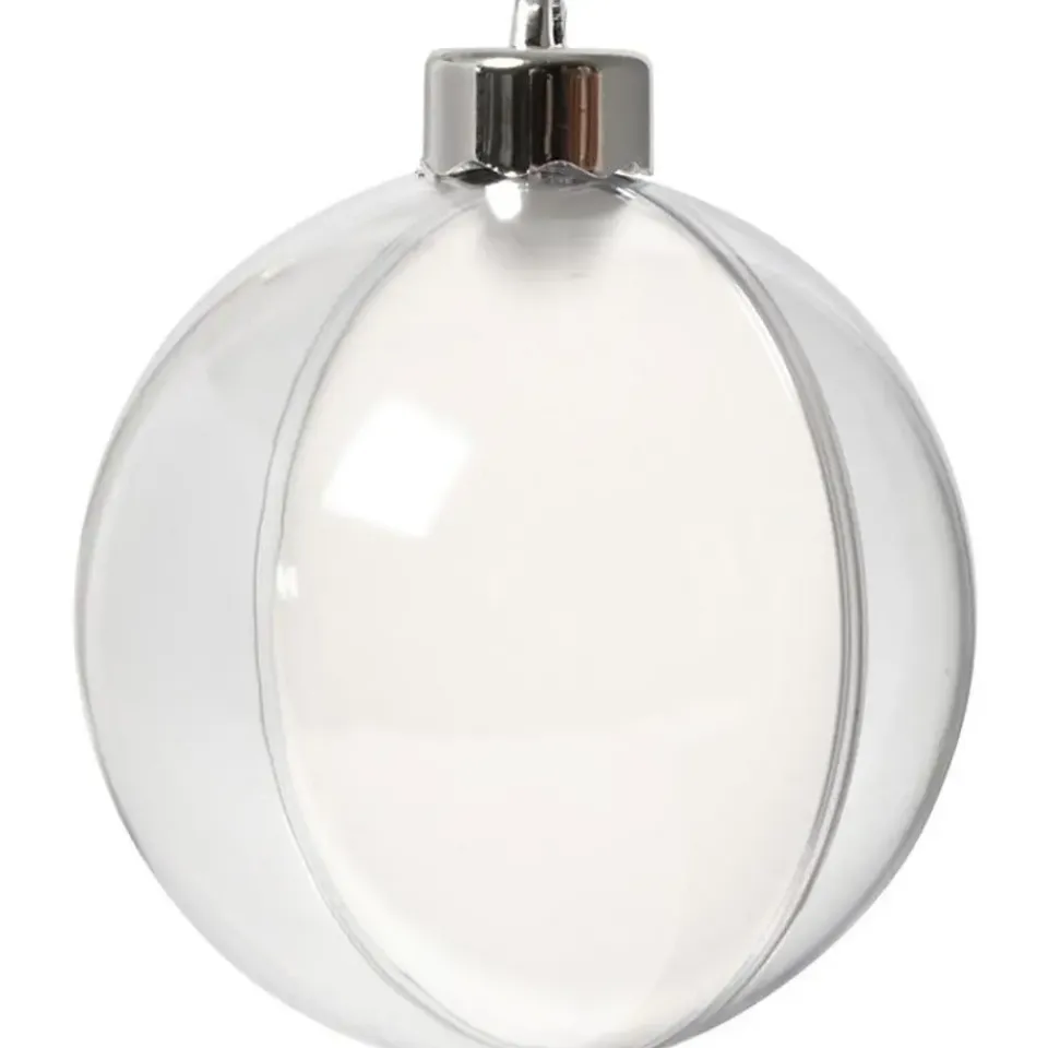 Met deze set heldere acrylballen maak je eenvoudig je eigen kerstdecoratie. Elke bal heeft een diameter van 8 cm en bestaat uit twee klikbare helften. Je krijgt per bal een decoratief kapje en een kartonnen inleg die je zelf kunt versieren en vervolgens in de bal kunt plaatsen.