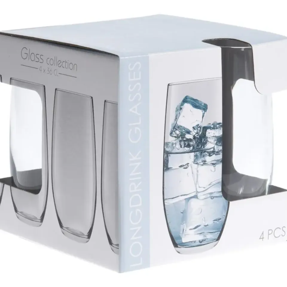 4x stuks verzwaarde luxe drink/sap/water glazen met een inhoud van 360 ml. Afmeting: ca. 5 x 14 cm. De glazen zijn geschikt voor in de vaatwasser. Glazen voor in elk huishouden en kantoor. Gecurvde vorm.
