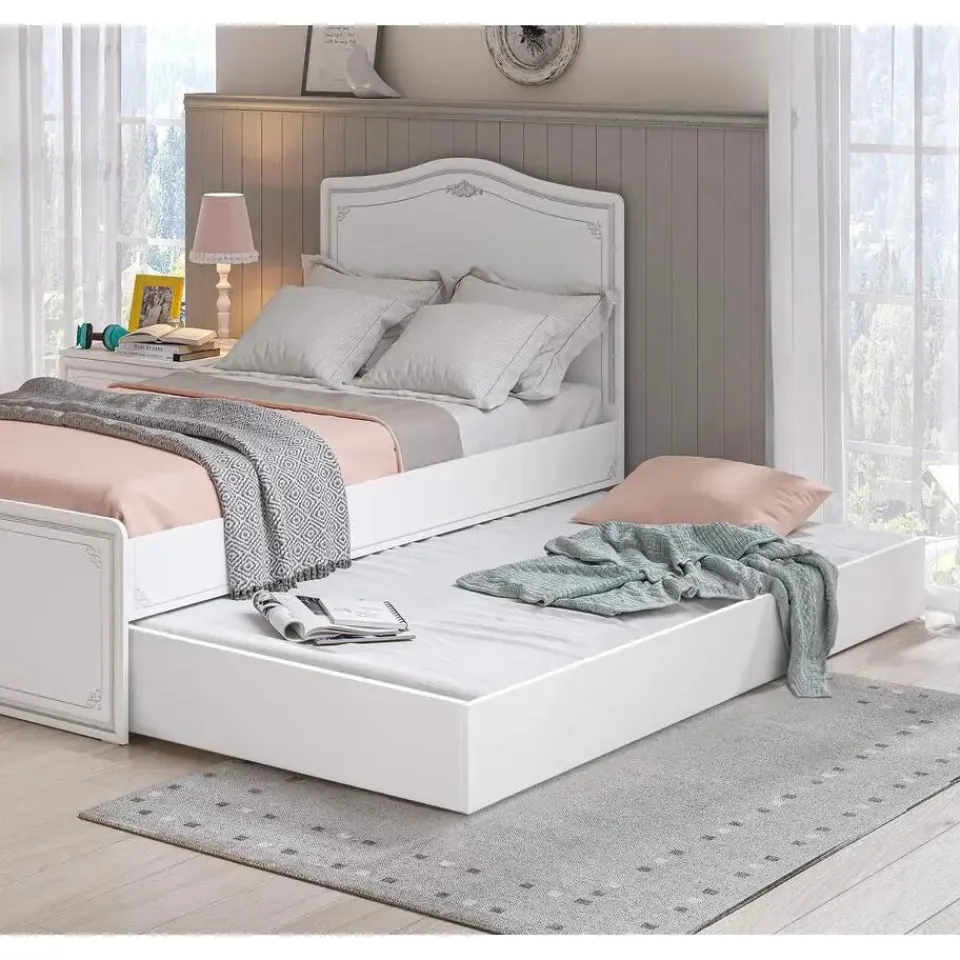 Het Emily meisjesbed biedt een comfortabele slaapplaats met een elegante uitstraling en mogelijkheid tot extra opbergruimte of logeergelegenheid met een bijpassende bedlade.