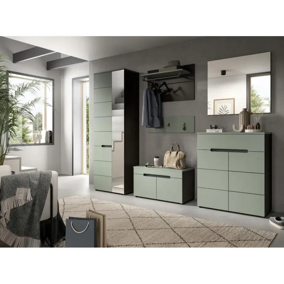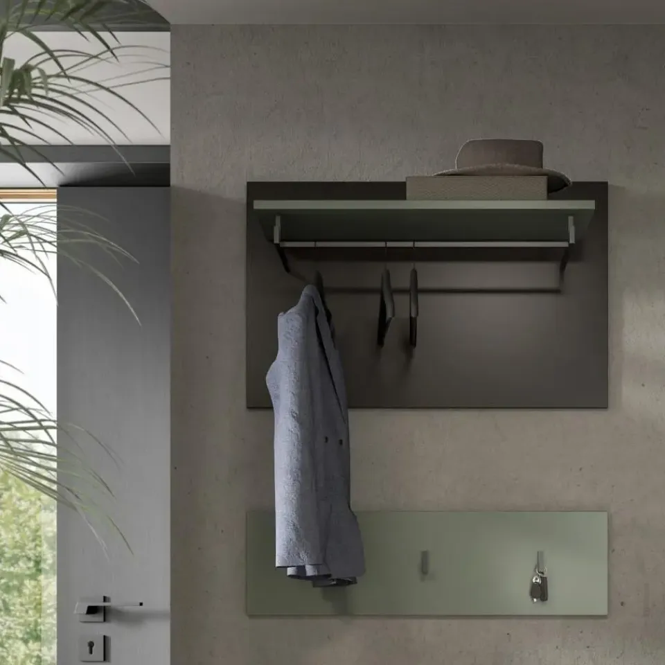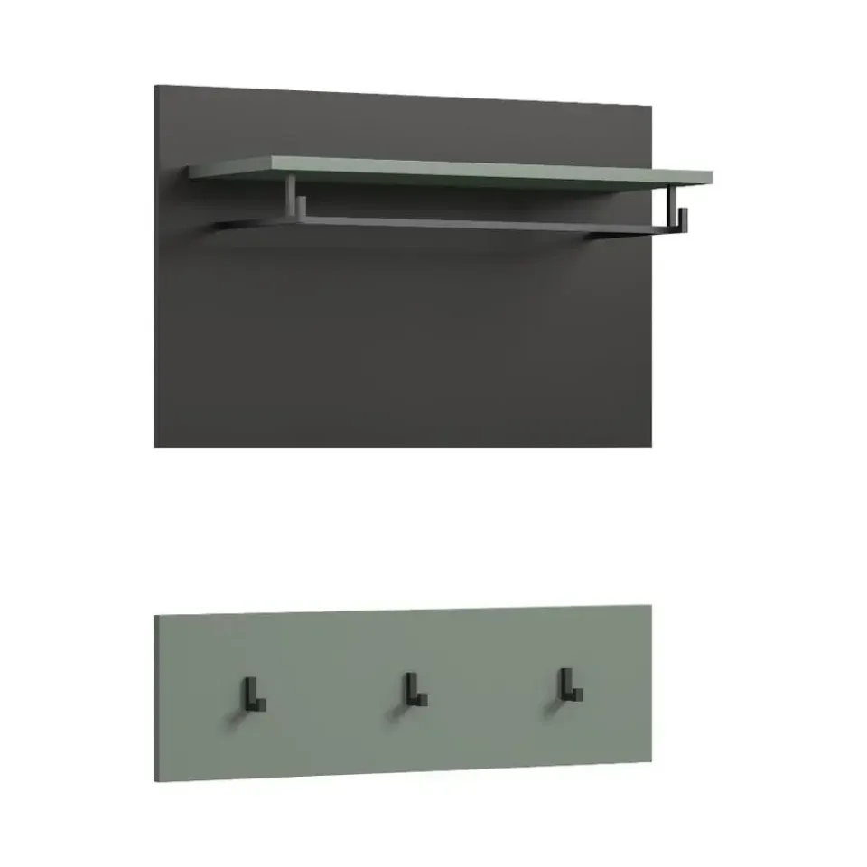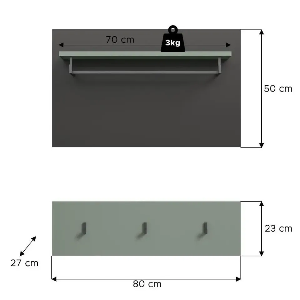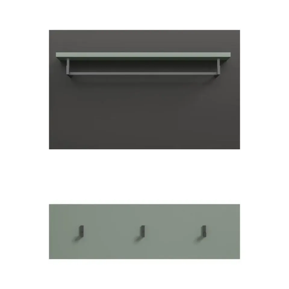Canu kapstok 3 haken stofgroen, donkergrijs. Aantal haken: 3. Ons paneel (B/H/D: 80x73x27 cm) in een stijlvolle rookgroene afwerking is de perfecte aanvulling op je hal! Met zijn moderne, minimalistische design biedt het niet alleen ruimte voor sleutels en accessoires, maar ook haakjes voor jassen en tassen. De lichte afwerking creëert een gastvrije sfeer en laat je hal ruimer lijken. Het praktische formaat maakt het gemakkelijk te integreren in kleinere ruimtes, terwijl de ingetogen elegantie elke interieurstijl complementeert. Maak je hal functioneel en stijlvol met dit hoogwaardige paneel en zorg ervoor dat er geen ruimte verloren gaat!