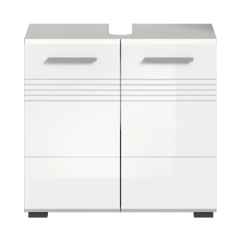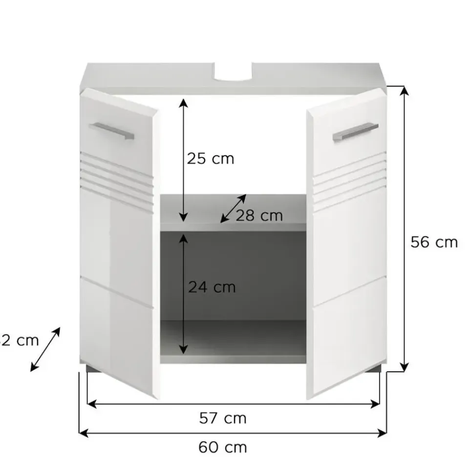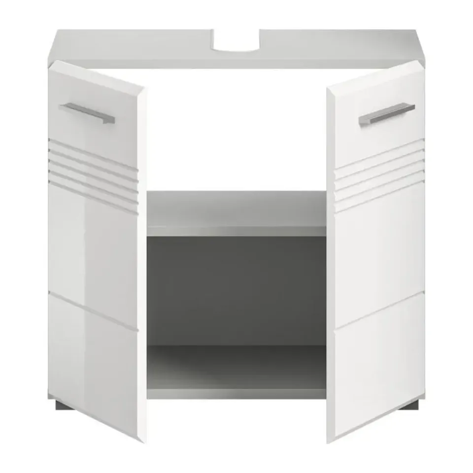 Copa wastafel 2 deuren wit hoogglans, lichtgrijs. Zonder wastafel. Deur met Softclose. Ontdek onze premium wastafelkast in elegant lichtgrijs en hoogglans wit, diepgetrokken voor een glanzende afwerking. Met afmetingen van 60 x 56 x 32 cm (B/H/D) biedt hij niet alleen praktische opbergruimte, maar geeft hij ook een moderne touch aan uw badkamer. Deze kast is de perfecte keuze om functionaliteit en stijl te combineren in uw badkamer.