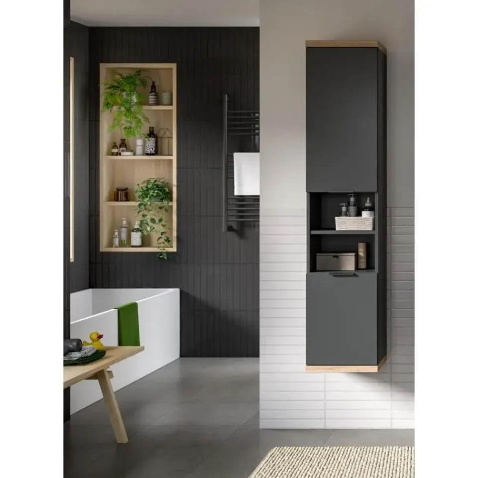 Merkloos Hioshop Nuaro badkamerkast wandgemonteerd 2 deuren grijs New