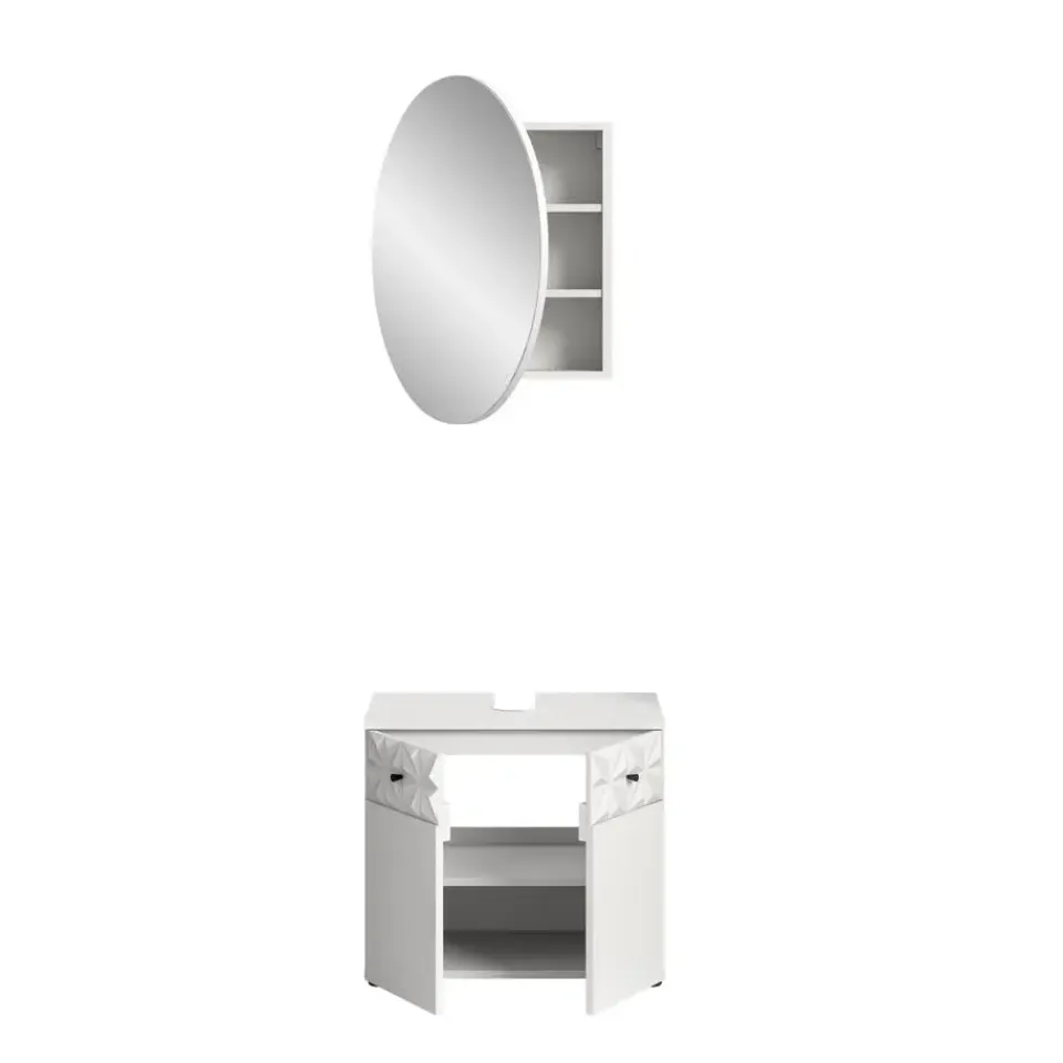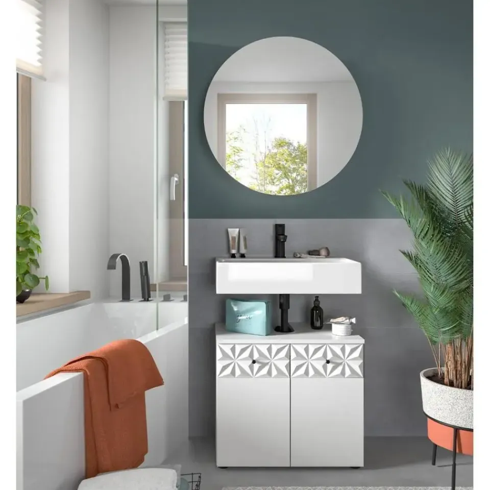 Prisma badkamer wit. Zonder wastafel. Geef uw badkamer een moderne en elegante uitstraling met deze badkamerkast. Het harmonieuze ontwerp en hoogwaardige vakmanschap maken dit meubel de ideale keuze voor verfijnde woonruimtes. Kenmerken in detail: Compacte afmetingen: Met afmetingen van 60 x 187 x 37 cm past deze badkamerkast in bijna elke badkamer zonder in te leveren op opbergruimte. Modern design: De witte melamine fronten creëren een strakke, tijdloze look die perfect past bij moderne interieurstijlen. Functionaliteit: Dit meubel is gemaakt van duurzame materialen en biedt een hoge weerstand en een gemakkelijk schoon te maken oppervlak. Bijzondere kenmerken: De zwarte metalen handgrepen voegen elegante accenten toe en completeren de stijlvolle look. Kwaliteit: Dit meubel is gemaakt van robuust FSC®-gecertificeerd houtmateriaal en overtuigt door zijn stabiliteit en hoge kwaliteit. Breng een frisse wind in uw huis met deze goed ontworpen badkamerkast en profiteer van design, functionaliteit en hoge kwaliteit in één meubelstuk.