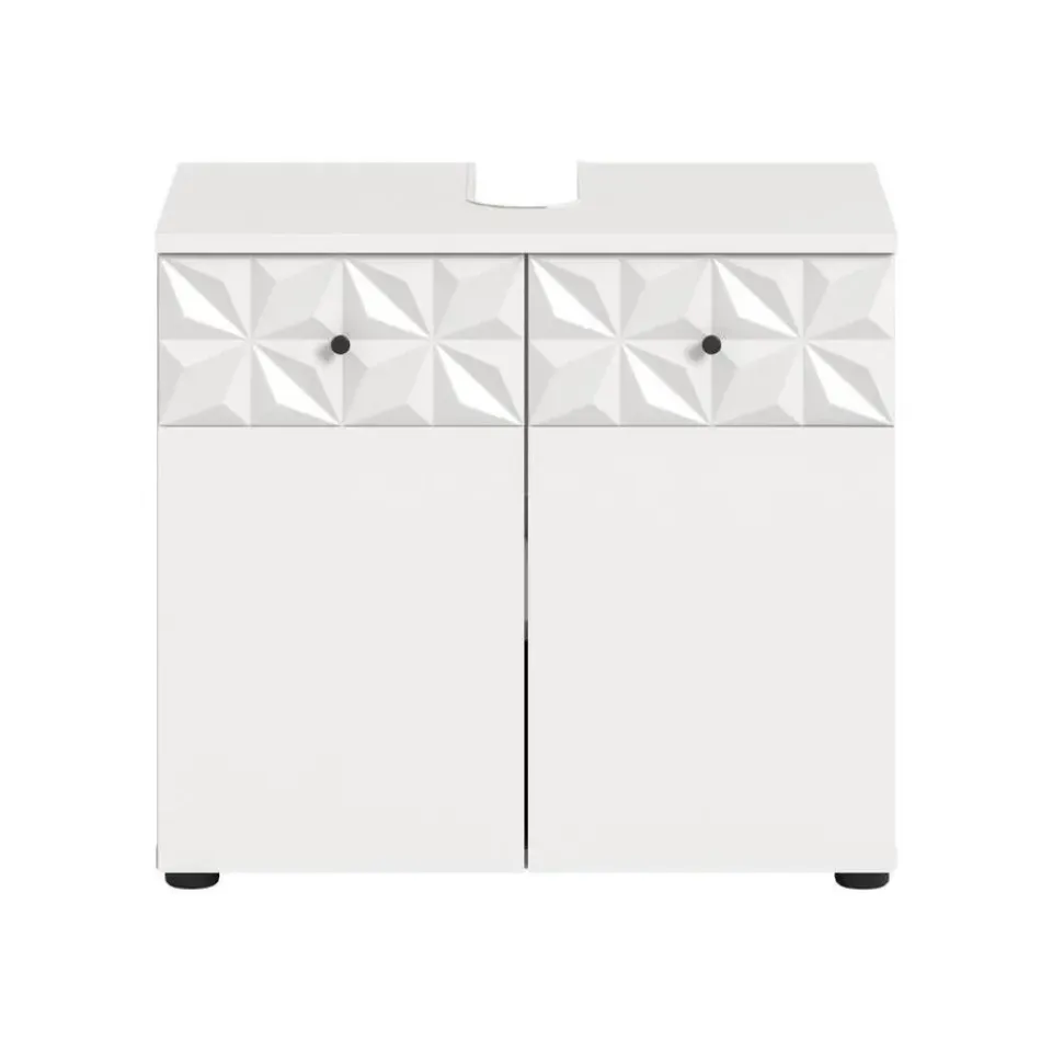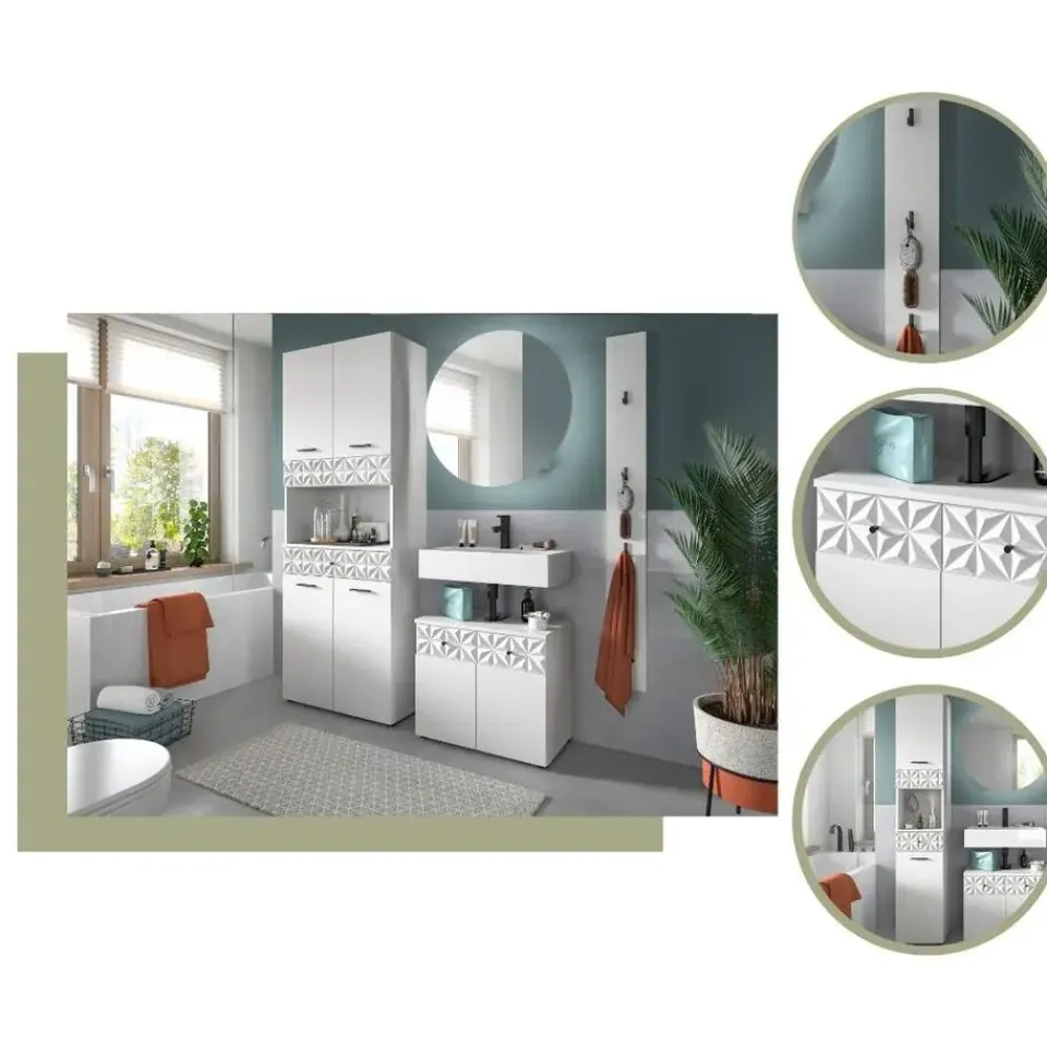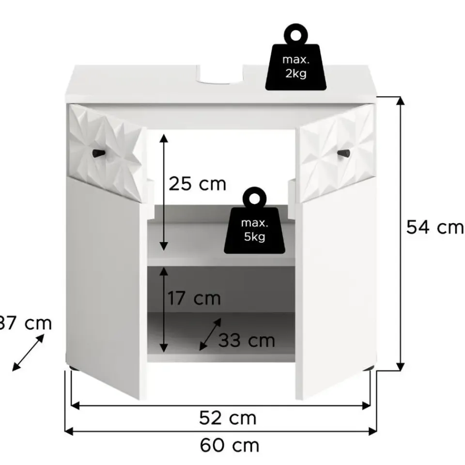 Prisma wastafel 2 deuren wit. Zonder wastafel. Deze wastafelmeubel (B/H/D 35x187x34 cm) combineert modern design met maximale functionaliteit en is de ideale keuze voor elke badkamer. Productdetails: Afmetingen: Met afmetingen van 35x187x34 cm biedt het wastafelmeubel voldoende opbergruimte om uw badkamerartikelen netjes te ordenen. Design: Het moderne witte melamine front geeft uw badkamer een lichte en uitnodigende sfeer. De zwarte metalen handgrepen zorgen voor een elegante touch. Materiaal: Dit meubel is gemaakt van FSC®-gecertificeerd houtmateriaal en ondersteunt duurzame bosbouw en bevordert milieubewustzijn. Gemakkelijk schoon te maken en duurzaam: De hoogwaardige materialen garanderen een lange levensduur en eenvoudige reiniging – ideaal voor dagelijks gebruik. Geef uw badkamer een moderne en stijlvolle look met dit wastafelmeubel. Perfect voor een tijdloos interieur dat elegantie en functionaliteit combineert.