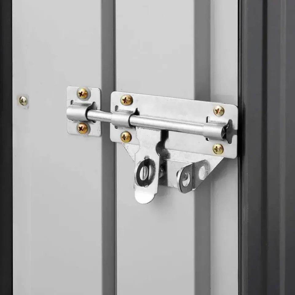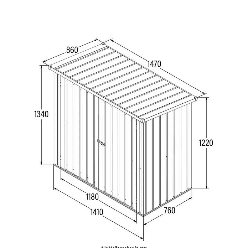 Dankzij de kleine rechthoekige vorm past het gereedschapsschuurtje in elke tuin zonder veel ruimte in te nemen. Het heeft ook een dak met één dakhelling, waardoor water gemakkelijker van het dak afloopt. Er is ook randbescherming op elke hoek van het dak.