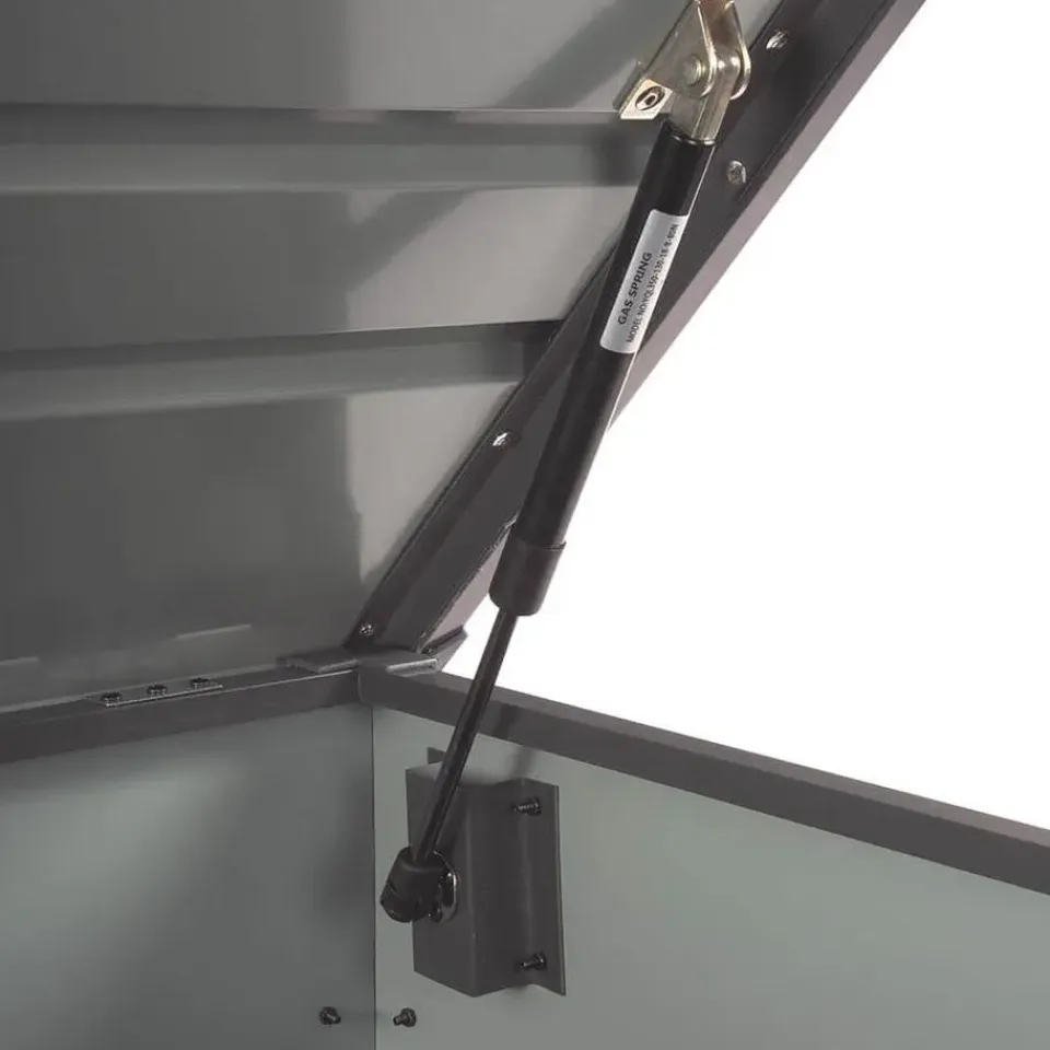 Alles heeft zijn plaats in deze box. Het gegalvaniseerde plaatstaal maakt de box bijzonder duurzaam, praktisch onderhoudsvrij en biedt een uitstekende bescherming tegen corrosie. Er is voldoende ventilatie binnenin, zodat er zich geen vervelende schimmel kan vormen. Het deksel is voorzien van 2 gasdrukcilinders en kan dus moeiteloos geopend worden. De opbergbox kan ook worden afgesloten voor extra veiligheid. Kleine meubelpootjes zorgen voor stabiliteit. Ze beschermen ook het oppervlak en beschermen de opbergbox tegen vocht.