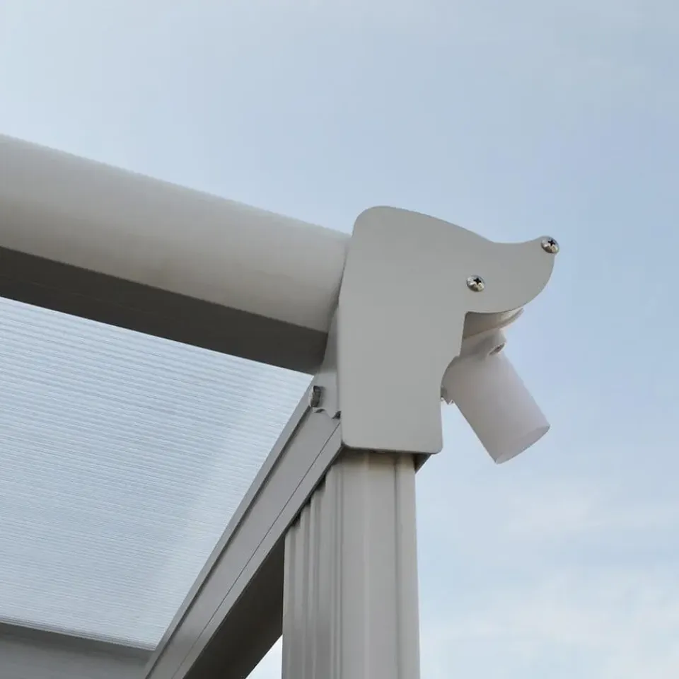 We bieden bewust vijf verschillende breedtes aan, zodat bijna elke gewenste installatielocatie qua oppervlakte mogelijk is. De volledige terrasoverkapping is ontworpen als bouwpakket. Dit omvat alle benodigde onderdelen: aluminium kijkrails (roestvrij, lichtgewicht en zeer stabiel). Daarnaast zijn er verbindingsplaten, beugels, U-rails, schroeven, pluggen, bouten, doppen, regenwaterafvoer en dubbelwandige dubbelwandige platen.