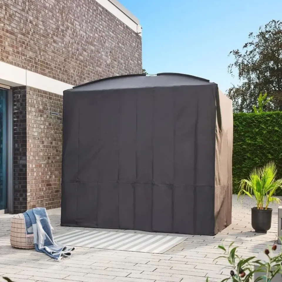 Het tuinpaviljoen biedt bovendien een heerlijke zon- en windbescherming. De strak geweven gordijnen van 100% polyester houden fel zonlicht en iets sterkere wind buiten. Tegelijkertijd is het materiaal van de gordijnen waterafstotend, zodat u, ook als er een lichte zomerregen valt, niet naar binnen hoeft te rennen terwijl u ontspant in uw tuinpaviljoen.