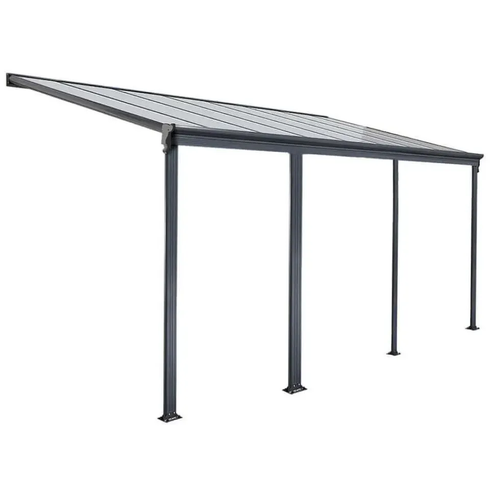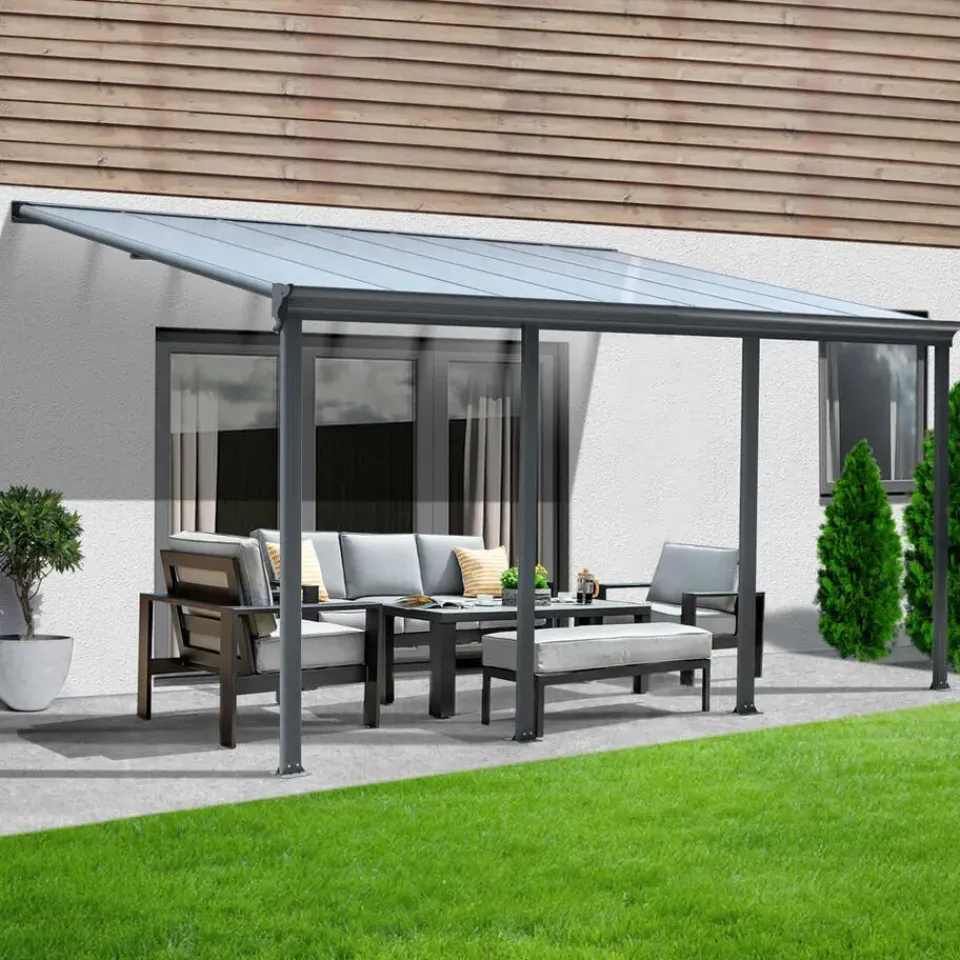 Dit model maakt indruk met zijn chique design en betaalbare prijs zonder in te boeten aan kwaliteit. De robuuste dubbelwandige platen zijn vorstbestendig, waterdicht, slag- en breukvast, vormvast, moeilijk ontvlambaar en bestand tegen vele oliën, zuren en vetten. De hoge transparantie en UV-bestendige coating voor een lange levensduur zijn bijzonder opmerkelijk. Mis de kans niet om je terras te verfraaien met SOLIS – de ruimtes onder deze terrasoverkapping zijn erg gewild.